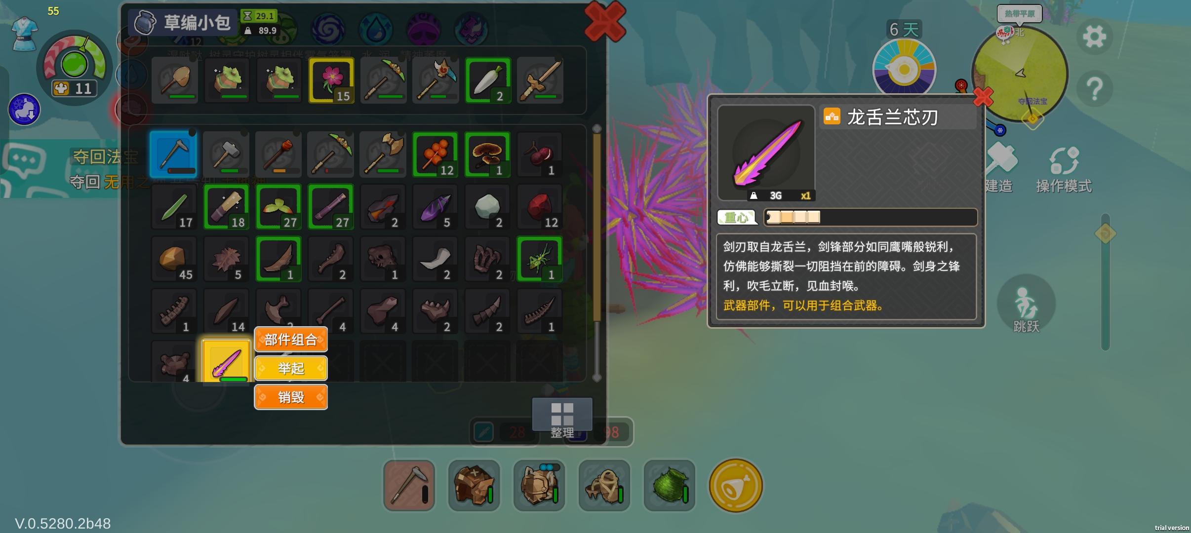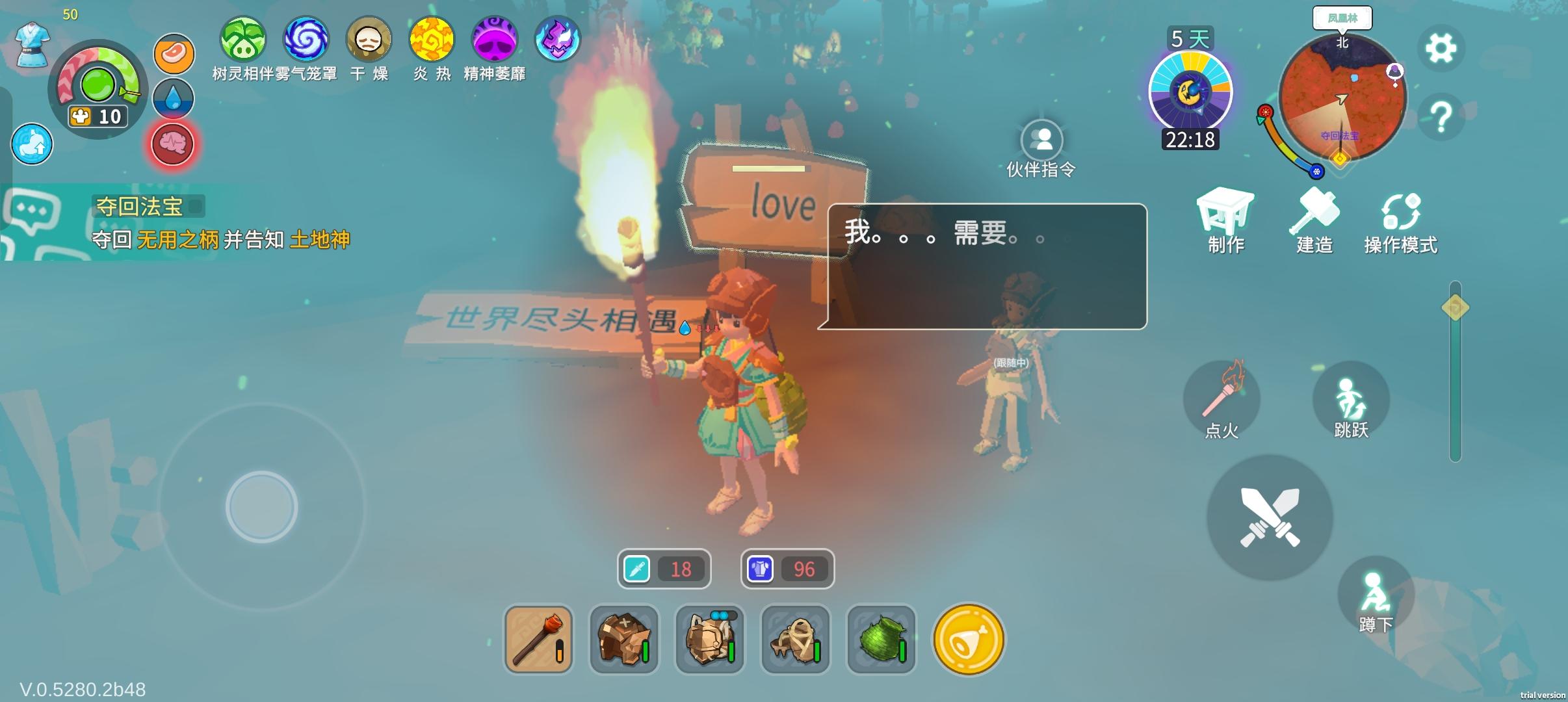 声明:该帖子里面BUG发现和建议仅是个人目前主观的观点,不代表官方最终优化。如果您发现了更多游戏BUG问题,欢迎评论!首先完成指引后路标都会消失,只有新手第一次“长按拾取所有物品”该路标不会消失。例如“坐在椅子上可以恢复血量”,切换建筑模式可以快速拆掉建筑”该路标都会消失。竹林任务的青蛙腿可以正常掉落,桃林的不能,卡在空中,搭上去也无法拾取。原本以为满血,却突然暴毙,但是不知道怎么卡出来的了