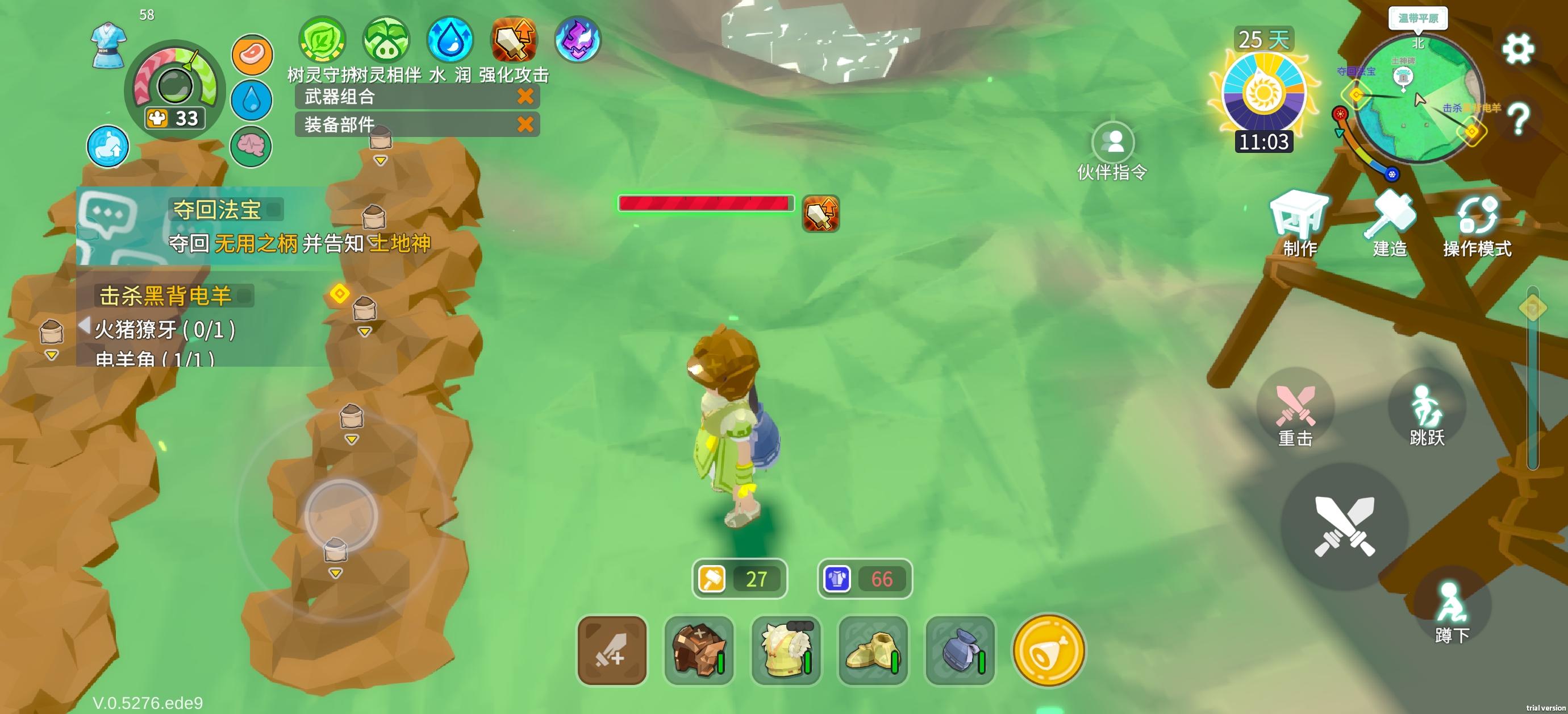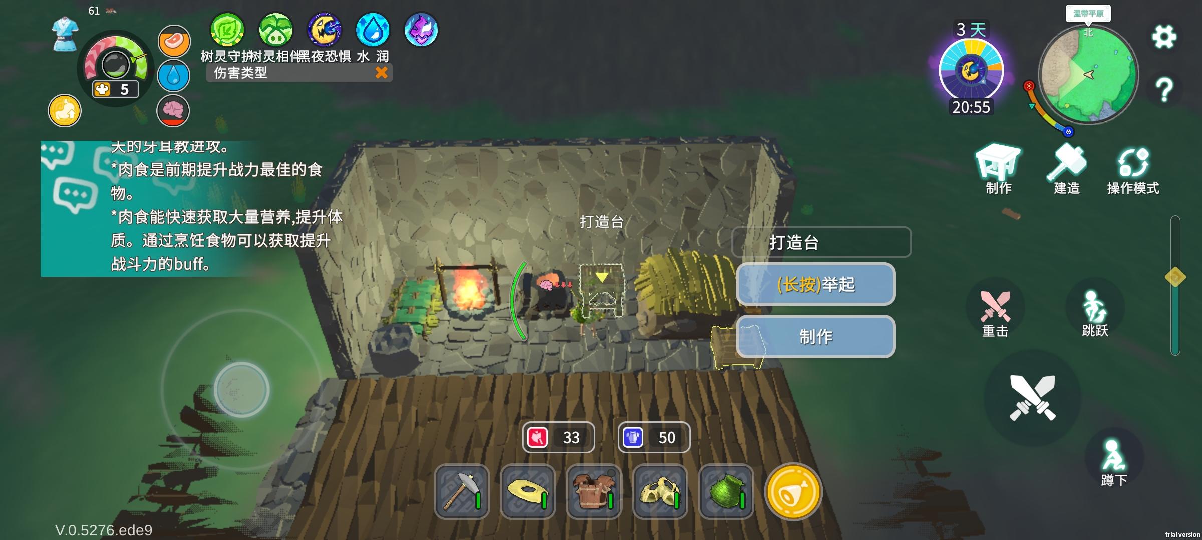 刚进入玩了十几分钟,各种采集完了就做了个草床,然后在开始做房子,这个房子真是做的便秘式的,先做地基,在做墙面,做屋顶时各种视角整半天,不小心把屋顶做到地基上,还不晓得做错的屋顶如何拆除,开头做到室外的草床也不晓得如何移动到房子里,最后做了个四处漏风的房子。重要的是卡的一笔,完全不能打开草地显示和粒子显示。游戏内容是有,但是玩的遭老罪鸟。果断退款跑路,手机别玩坏了。
