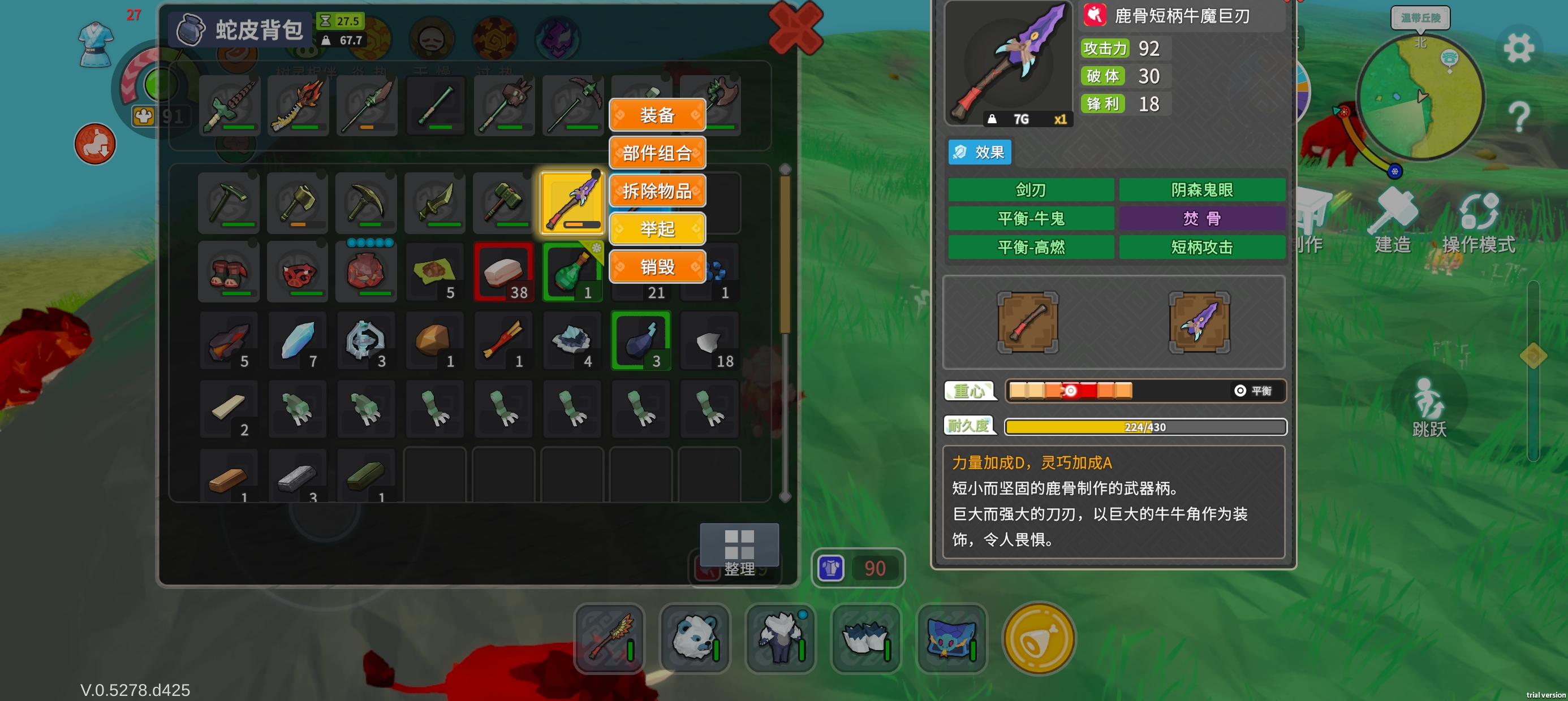 玩法:中国版3d饥荒,内容比饥荒多,玩法很真实,确实很好玩,价格合适,但是,可以等一波优化再入。手游端:1+ACE3Pro,开性能模式,高帧率高分辨率,30秒开始发热,持续游玩3分钟,帧率掉到29端游:手机持续游戏10分钟实在受不了,买了steam本体+捆绑包95元(本体65元),最高画质,散热风扇都懒得转,这里提一嘴,开发者13个月没更新端游,专门移植手游,端游