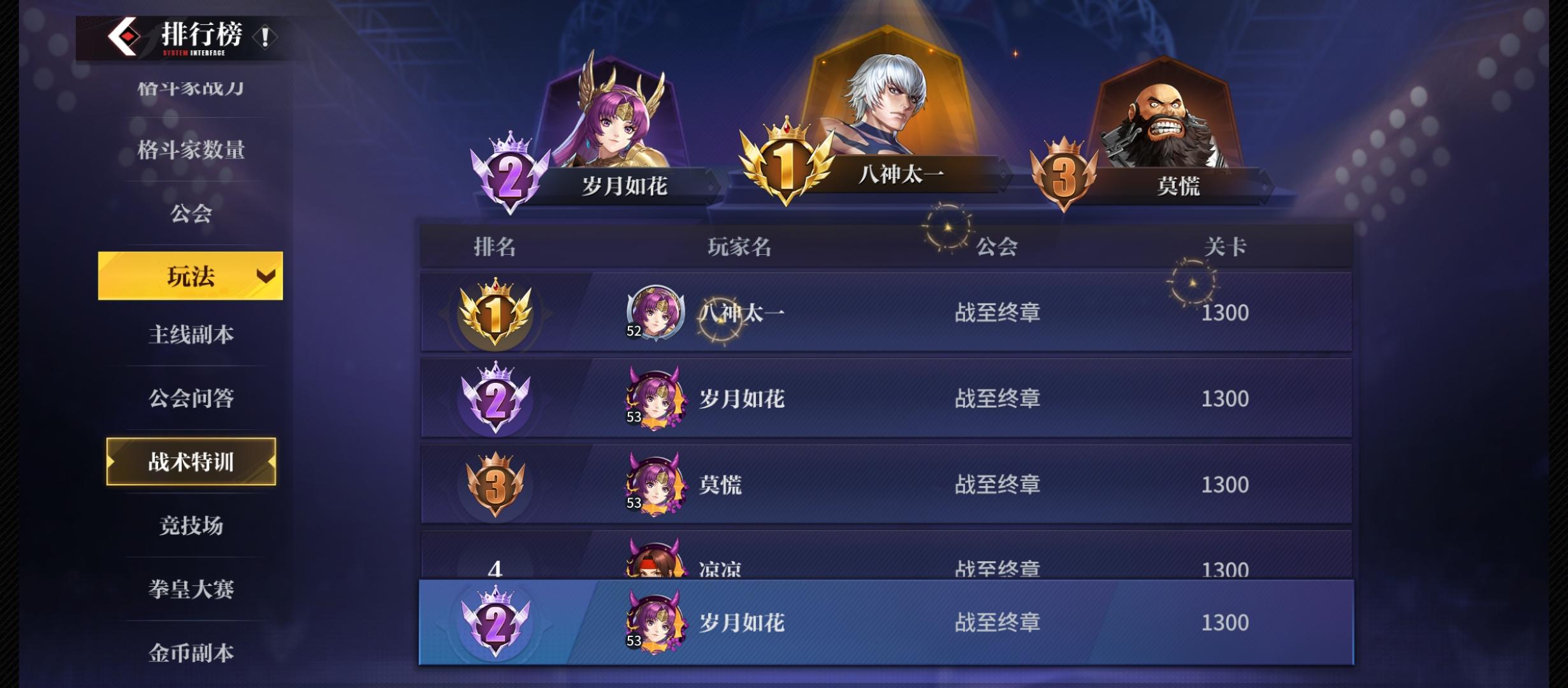 #kof新篇测试 #代号97 目前版本由于切后和打列的强势,火队生存环境极其艰难,唯一可说的就是爬塔配灼烧,爽飞天火队核心(明面上)肯定是炎克,超必杀引爆灼烧,死亡蔓延以及回怒,机制就是定位火队太子,但是!!!,真正的火队大佬--镇元斋,超必杀180倍率超越大蛇,成为火队的真巨佬,伤害谁用谁知道,甚至进其他队伍也有不俗表现综上心愿肯定老头(自选优先到觉醒)➕炎克火队还有一个隐藏大哥柴舟,在