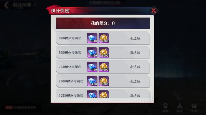 混沌深渊1. 开服第2天开始,每天20:00准时开始混沌深渊挑战活动;2. 混沌深渊目前共有大蛇、卢卡尔、高尼茨3个首领,轮换出现;3. 活动开始后,玩家可进行挑战、采集和抢夺:a) 挑战:活动期间可挑战3次首领,根据伤害获得对应积分;b) 采集:活动期间场景内每隔一段时间会刷新采集物,采集物除宝箱奖励外,还有强力的挑战增益,助力首领挑战;c) 抢夺:可抢夺非本公会玩家的积分,提升个人