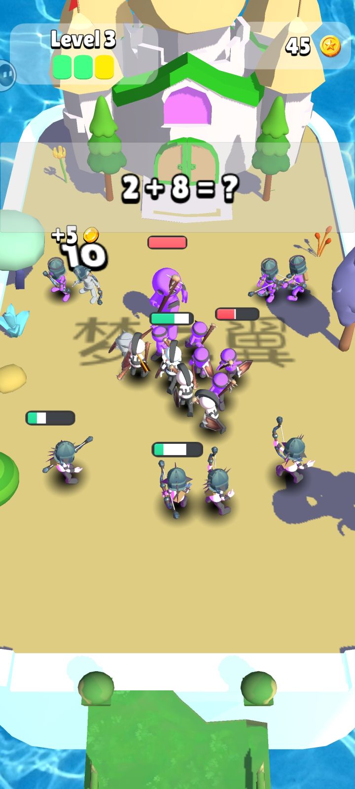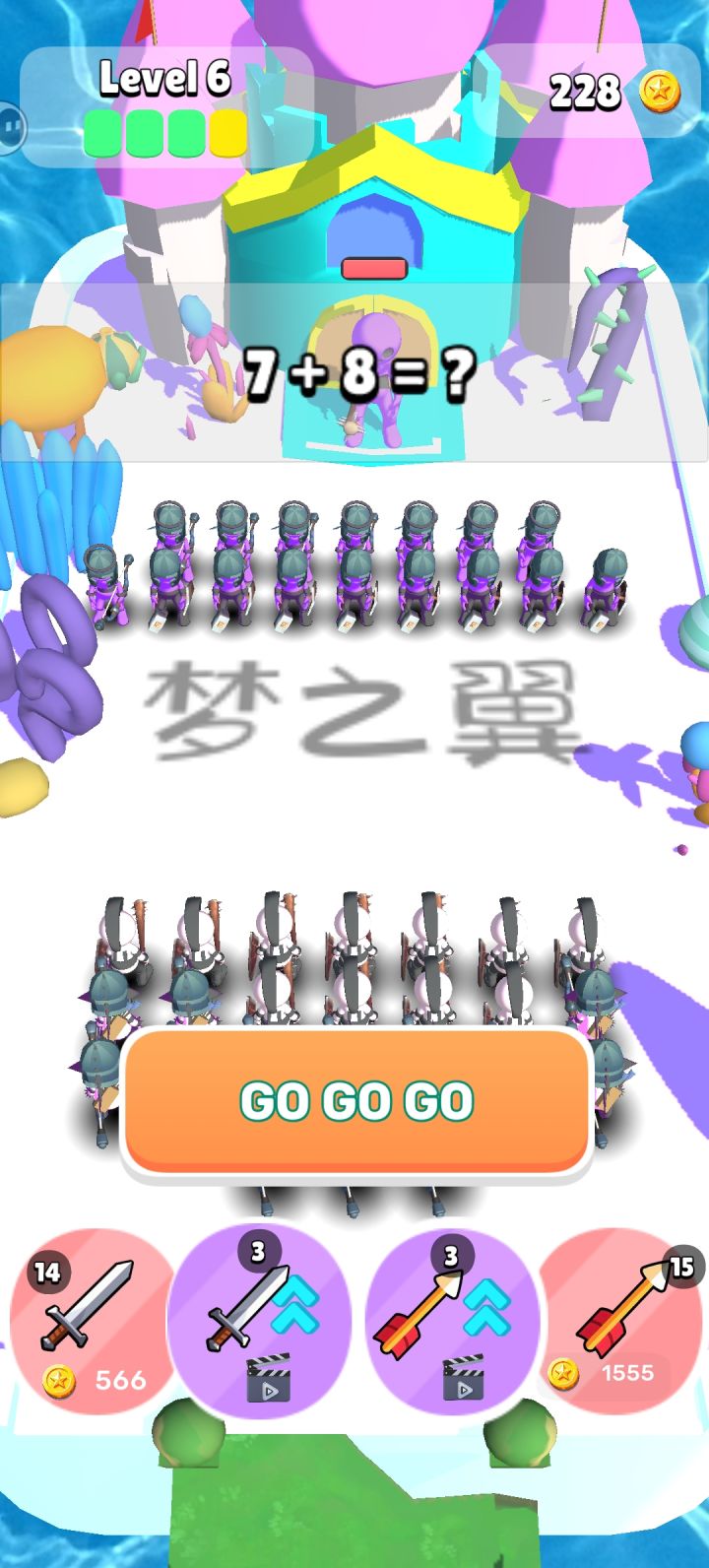 游戏是简单的召唤一些小人战斗,有剑士和弓箭手,一直推图,失败也没事,获得的金币会保留下来,可以再召唤小人然后重复刷金币召唤小人推图。