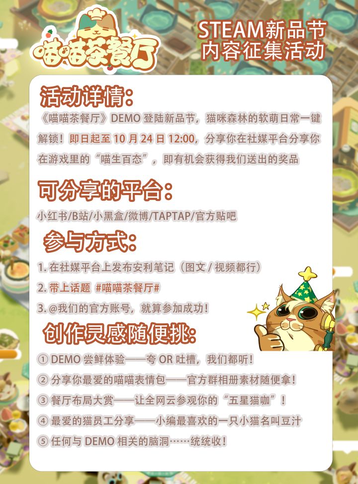 喵喵茶餐厅邀你于Steam新品节体验免费试玩