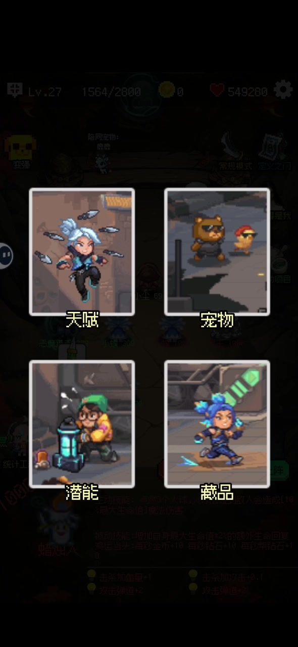 因为游戏里没有英雄的全图鉴介绍暂时,那么,好!来简单介绍一下,你在游戏过程中可能会使用到的英雄们,以及简单点评 1.暴躁丽姐 萌新推荐 鸡:上来的第一个角色,啊,是因为我老婆就叫丽姐,所以,新进的玩家一人送一个鸡嫂! 前期使用的角色,击杀增加的攻击力,相对会比较平稳度过前期 2.龟丞相 新手推荐 鸡:也是前期很猛的一个角色,基础攻击间隔降低,可以在攻速上来之后发射更多的子弹 最高的攻击间隔 = 基