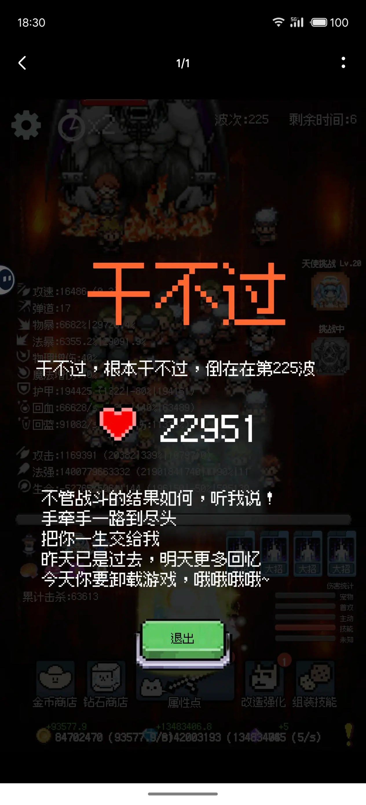 首先选到拼夕夕这个模式,如果不对就需要系统改时间因为几种玩法是系统轮换的核心原因是这波怪打不死就永远不会刷新,只需要你生命回复比这波怪攻击高,并且不攻击就会一直过关玩法:1.用恶魔猎手度过前期,然后进化英雄选蜡烛,因为蜡烛的被动是按比例加回复2.宝物第一个选生命加成,第二个选拳套()这样就不攻击了3.拼夕夕技能选挨打10万就会加额外生命值4.选以后不会出鹏哥5.挂机吧,不想打了就左上