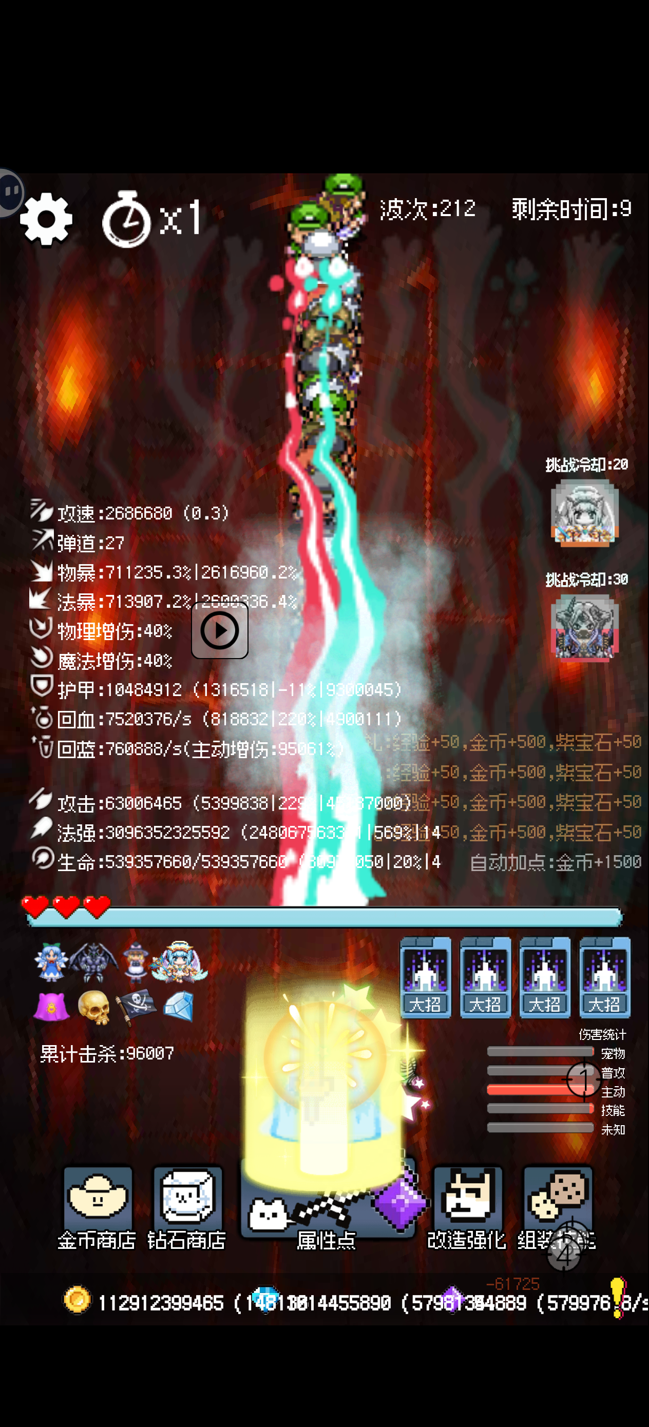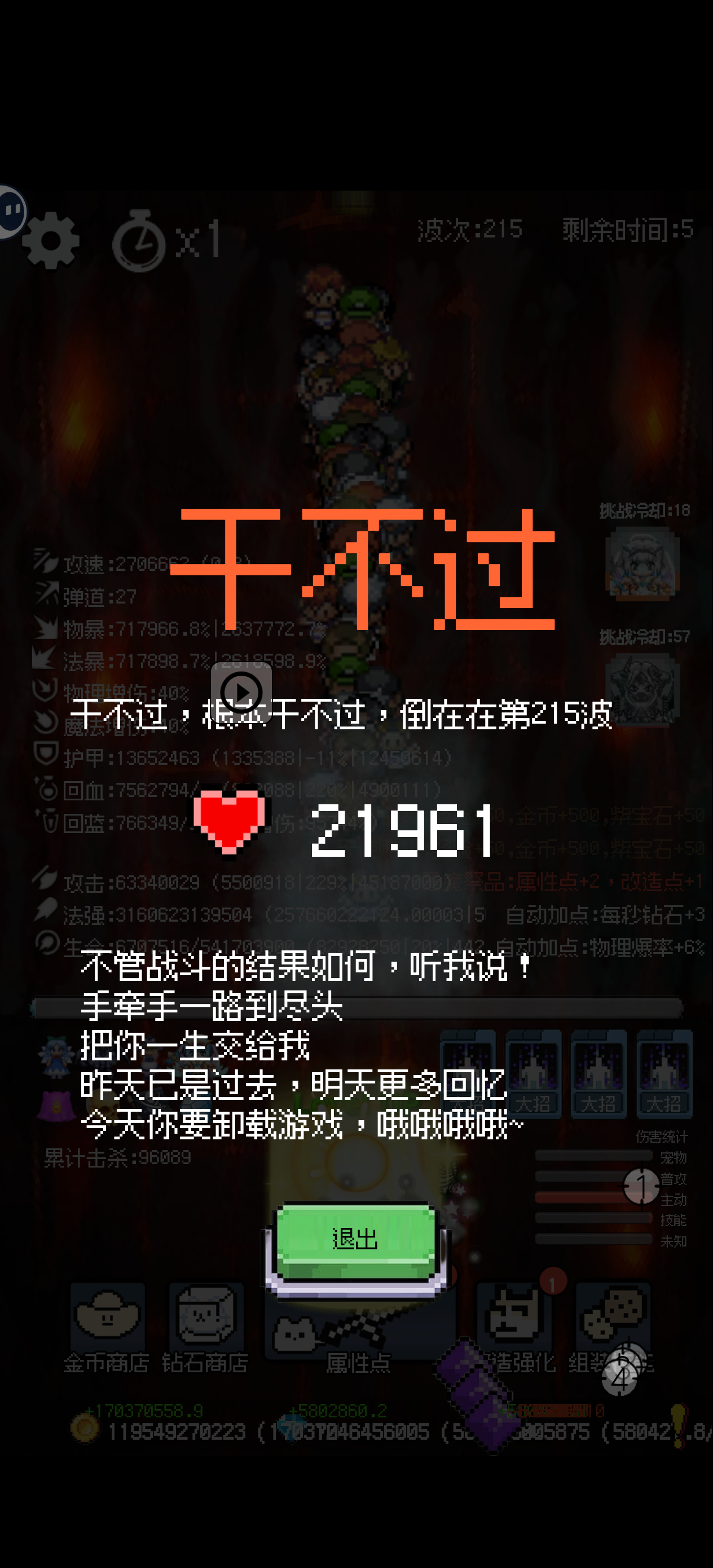 这血条一跳一跳的老是99999999,结果跳完还是会没加血量,最后一个英雄要是蜡烛人就好了