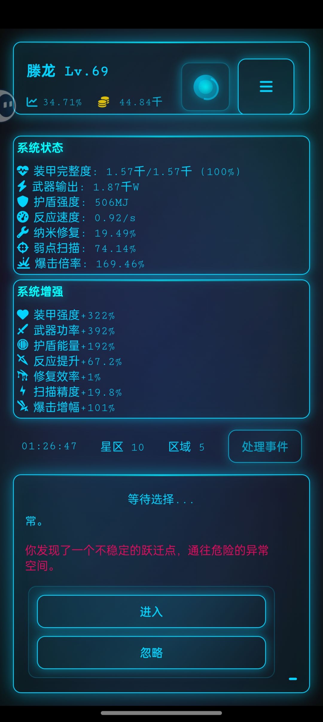 游戏事件中提升怪物实力不要点,虽然可以增加更高的装备爆率,但影响人物升级,不点的话只是几率低偶尔还是可以出的。图片1打了就进入下一星区,怪物等级提升五级,有打下个地图实力再打。高级地图装备属性更高,升级的随机属性尽量优先输出,这样打怪快很多,感觉玩法就是不要重开一直升级打更高级别的图。