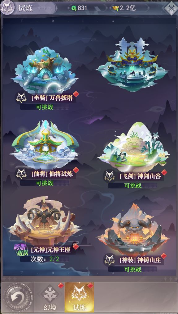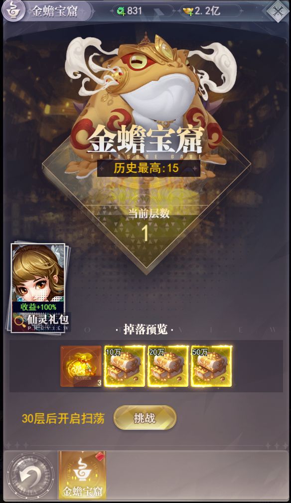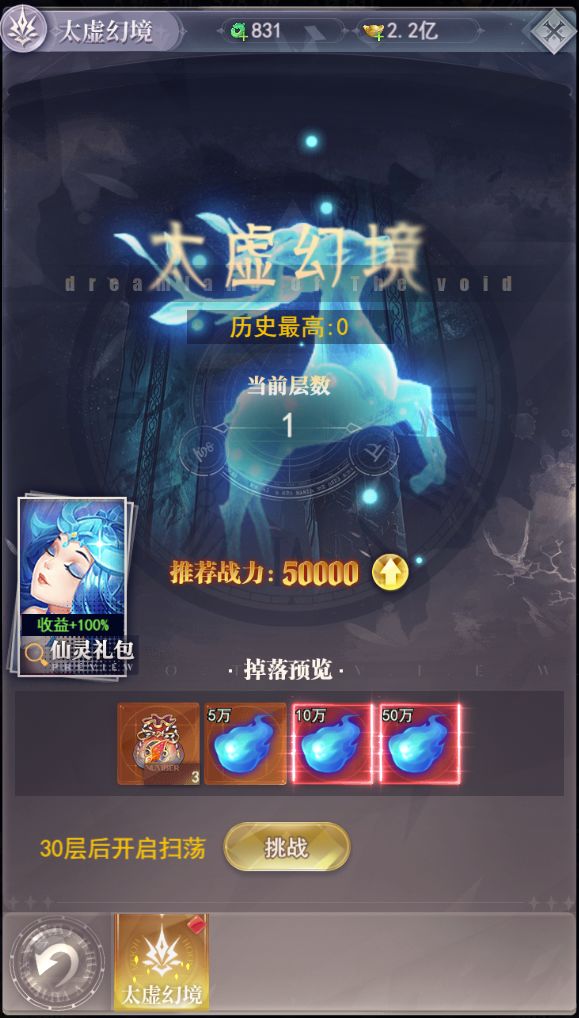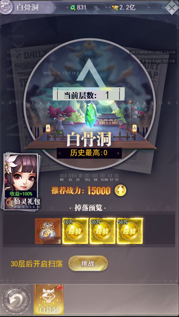 副本,是游戏内获得各种养成材料的宝藏之地,其中也充满了挑战与机遇,下面来介绍一下副本的玩法吧! 幻境:幻境玩法包含游戏基础的灵气、经验、元宝的获取来源,通过挑战塔类副本玩法,获得以上奖励,层数越高,奖励越丰厚,超过30层后即可每日进行扫荡了,同时游戏内也可以获得对应的挑战券门票进行多次挑战 白骨洞:游戏内重要的经验来源,玩家升级所需的日常经验大部分来源此副本,要每天记得挑战哦。 金蝉宝