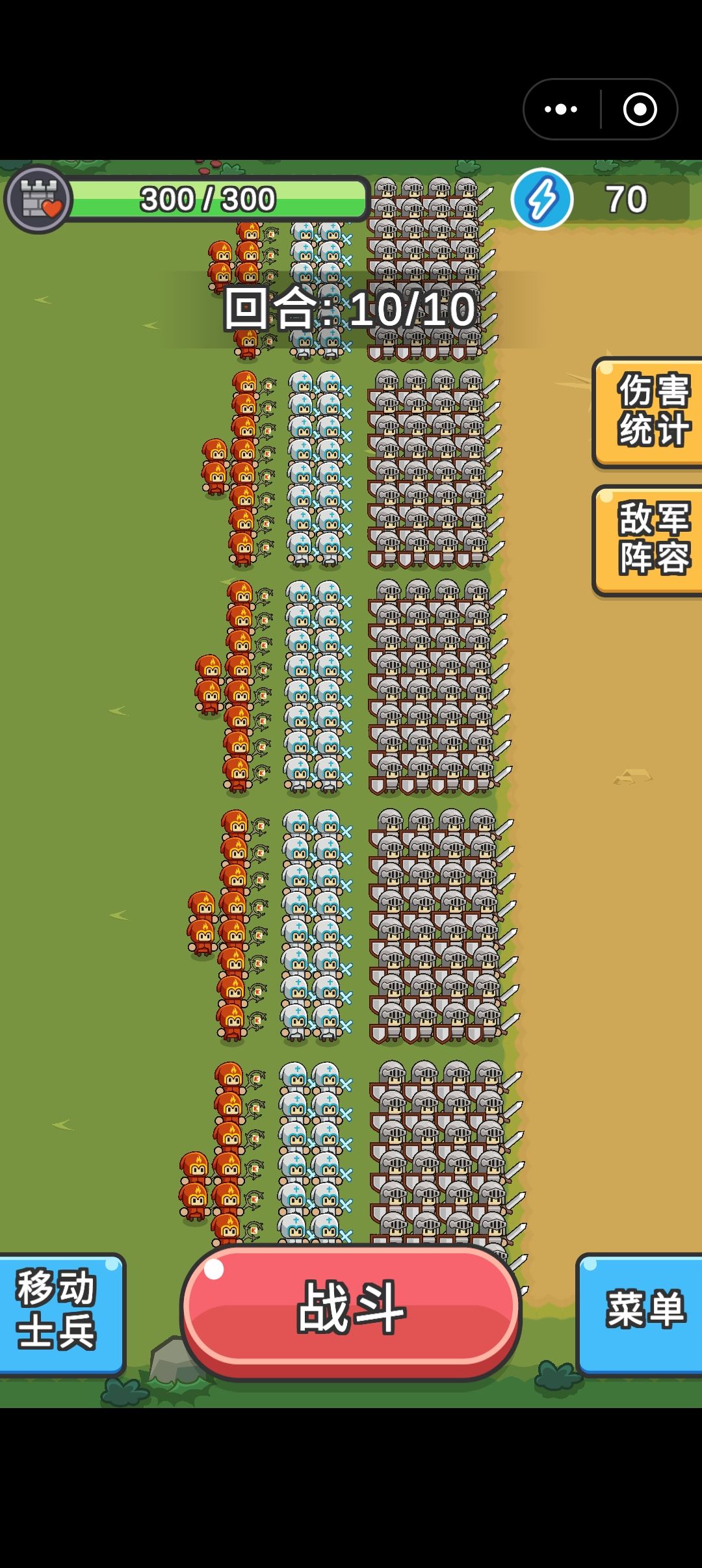 其中需要优先保证盾兵的再生和格挡点满,法师和弓箭手点射程就行了 其中只有对面远程和毒比较多的情况才可能会掉血,这种情况可以把法师换成刺客,点毒爆和闪避就行了
