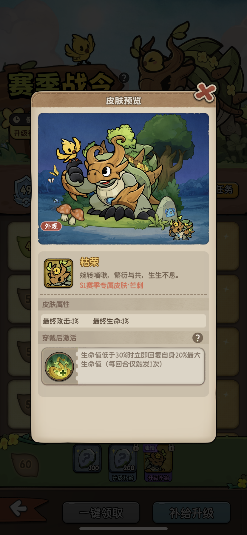 亲爱的冒险者:为对游戏进行更新与优化,我们计划于2025年12月23日进行全服更新,本次更新为【停服更新】,请各位冒险者提前下线以避免损失,以下为本次更新的详细信息:✦维护时间✦2025年12月23日(周二)9:30-11:30,预计2小时(*开服时间可能提前/推迟,请您谅解)✦维护补偿✦星钻*200、行动力*30本次更新包括以下内容:✦优化与调整✦ 1、赛季相关= S1赛季排