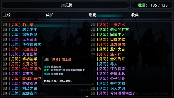 2周目完成,见闻只收集135个,还少3个,请高手指教。