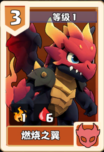 亲爱的冒险家们好呀~今天给大家带来巨龙—燃烧之翼的使用攻略,它的使用率和胜率都是极高的存在!!这只威猛的巨龙名叫燃烧之翼,无论是pvp或者pve,它都是t1的存在!一、随从介绍1、属性介绍燃烧之翼,种族归属--‘龙’,待机值3,1级基础属性1|6,满级基础属性2|9。燃烧之翼属于法坦,因为有着较高的生命值,可以配合他的技能打出稳定的伤害。2、技能介绍技能1--飞行依靠该技能,若移动途