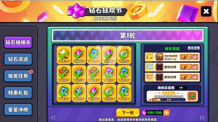 亲爱的冒险家们好呀~我们的钻石狂欢节开启啦!!!快准备好您的小手,一起把紫钻、金卡一并收下吧~ 活动期间只需要登陆就能够领取大量紫钻、完成简单小任务还能拿取金卡等奖励!一、活动时间2025年11月29日—2025年12月06日*活动结束后不可领取奖励,请及时领取*二、参与条件冒险家杯数≥2000时自动开启活动三、活动介绍1、钻石抽抽乐活动期间可花费紫钻进行抽奖,每次抽奖需花费15