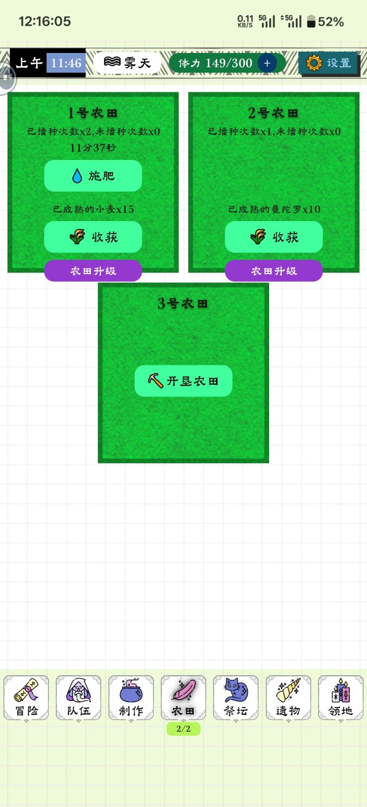 虽然是个小游戏,没有美术,但不得不说,模拟经营,养成,种地,发育内容都有了
