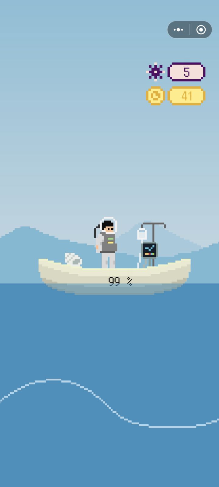 2D像素风美术品质较好,界面结构简单,UI品质一般。角色外形看起来像穿着太空服,实际是潜水;就连船上升级的设施看着也像吊瓶架子,有一定视觉反差。潜水会遇到各种各样行为路径的鱼,
