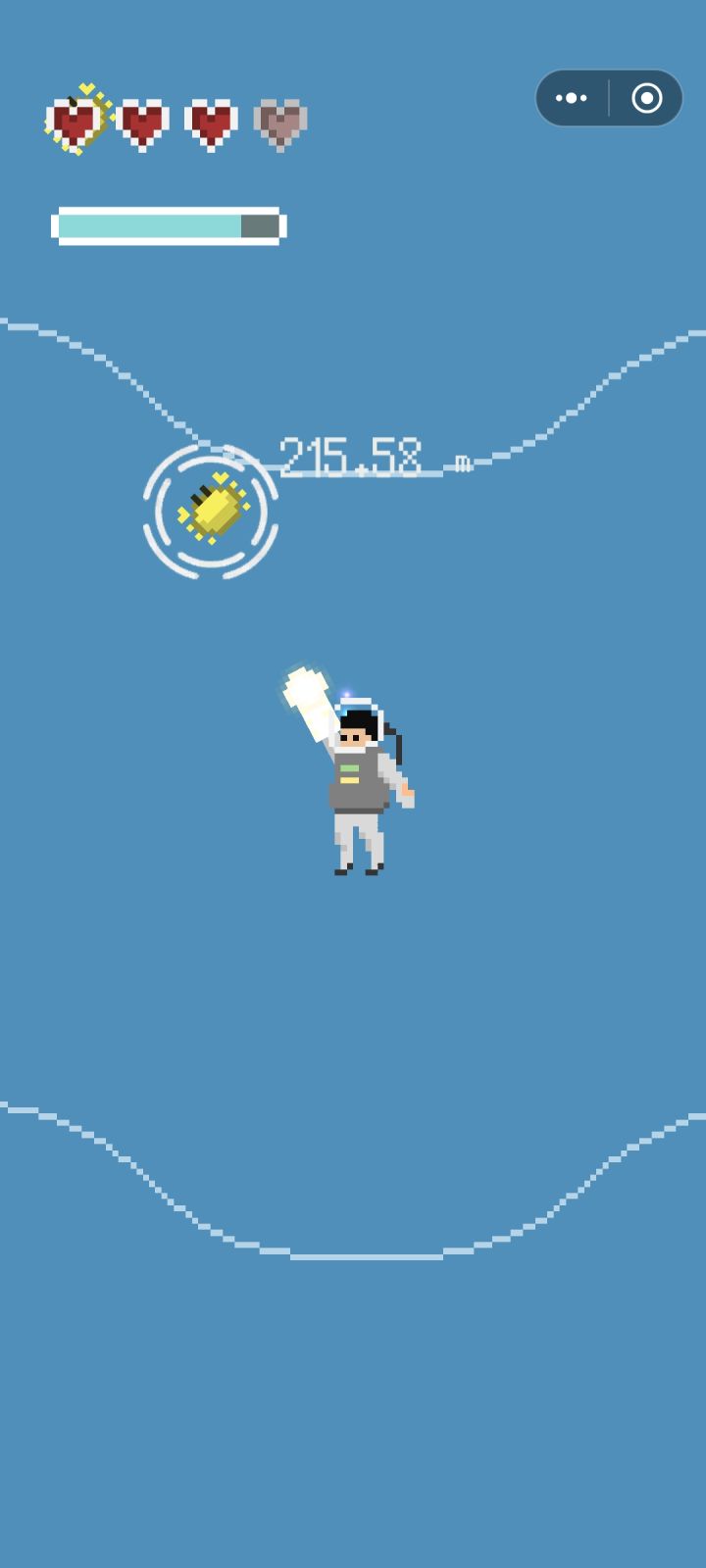 看名字容易被误导,实际是下潜摸鱼。单手指控制摇杆下潜移动,松手自动发射子弹攻击鱼类,同休闲小游戏的操作方式,简单易上手。被打中的鱼类会变成泡泡,吃掉增加氧气容量,从而下潜更深。游戏玩法就是这样,比较单一的小游戏,和送外星人回家差不多,只是一个向上一个向下。