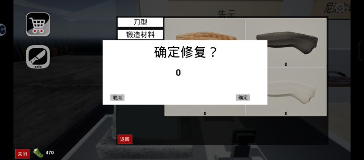 先按着新手教程走,前面应该都没问题,锻造完毕(也就是无法再使用铁砧)之后,把锤子放回原位,然后才能进行淬火和回火操作,这也是劝退许多玩家的地方。工具袋无法回收是官方优化问题,把刀卖掉之后在右上角设置里面存档,重新进游戏工具箱就会回到原位,比较麻烦。某些刀具存在放材料进去无法加热的情况,这时候试试再放入一个材料,因为某些刀具存在需要多个铁料的情况。