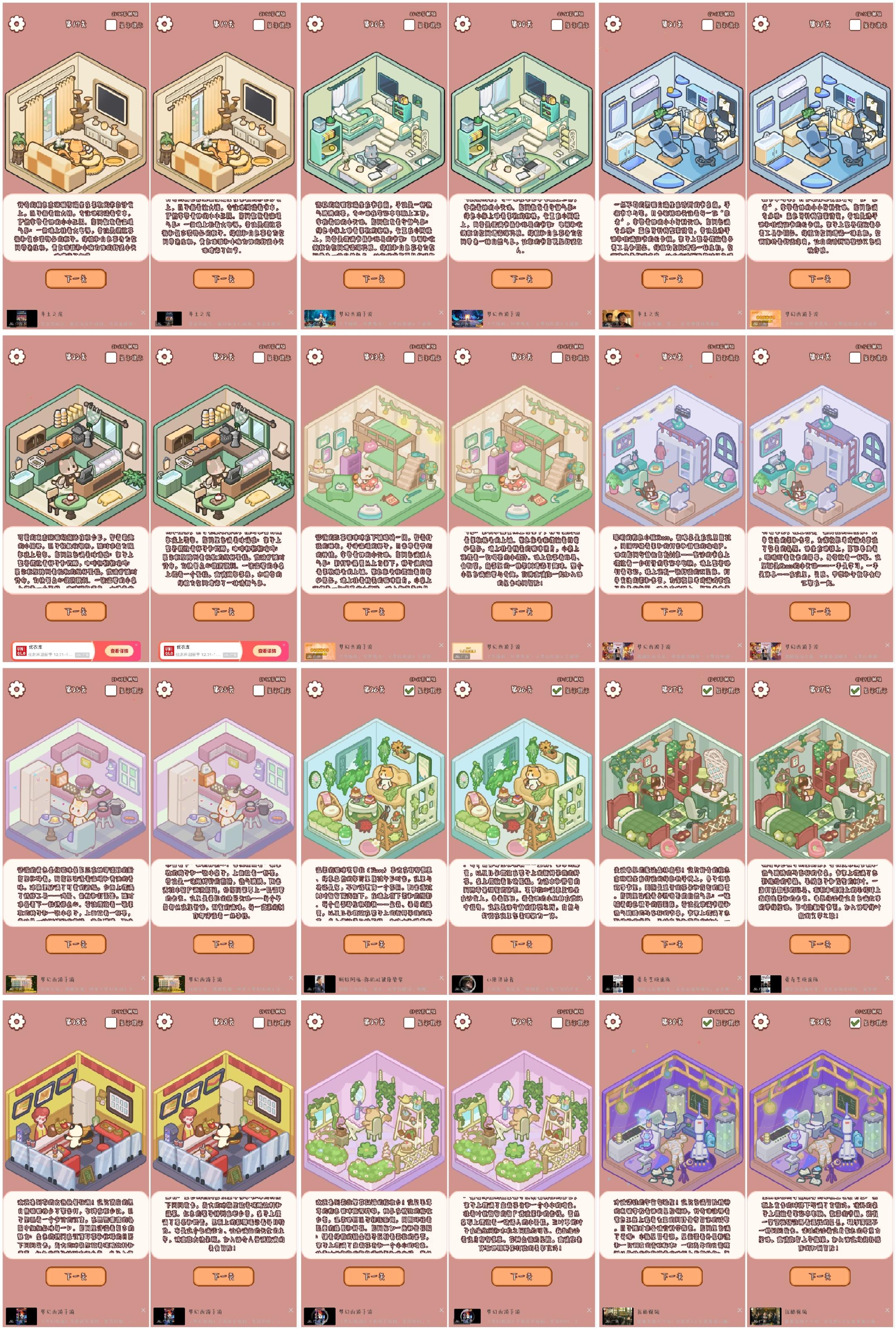 以及给同类型游戏粉丝一句劝,想给虚拟房间贴墙纸?不如打开房屋设计软件,至少那里有真正的创造自由,而不是把开发者预制家具填进程序预设的光标框里。玩同类型游戏又不想付费的结局只有一种:你放下手机,发现自己白白消耗了三十分钟生命。
