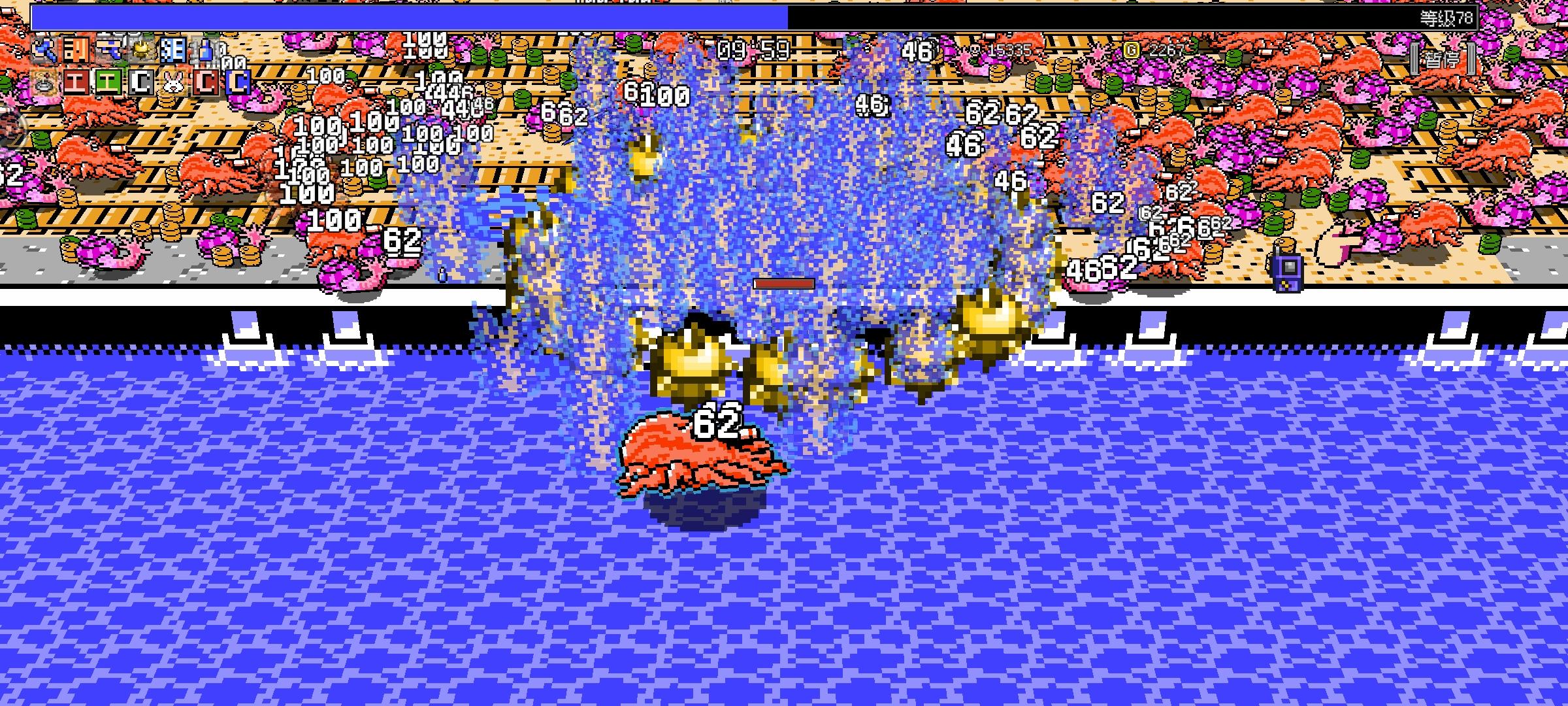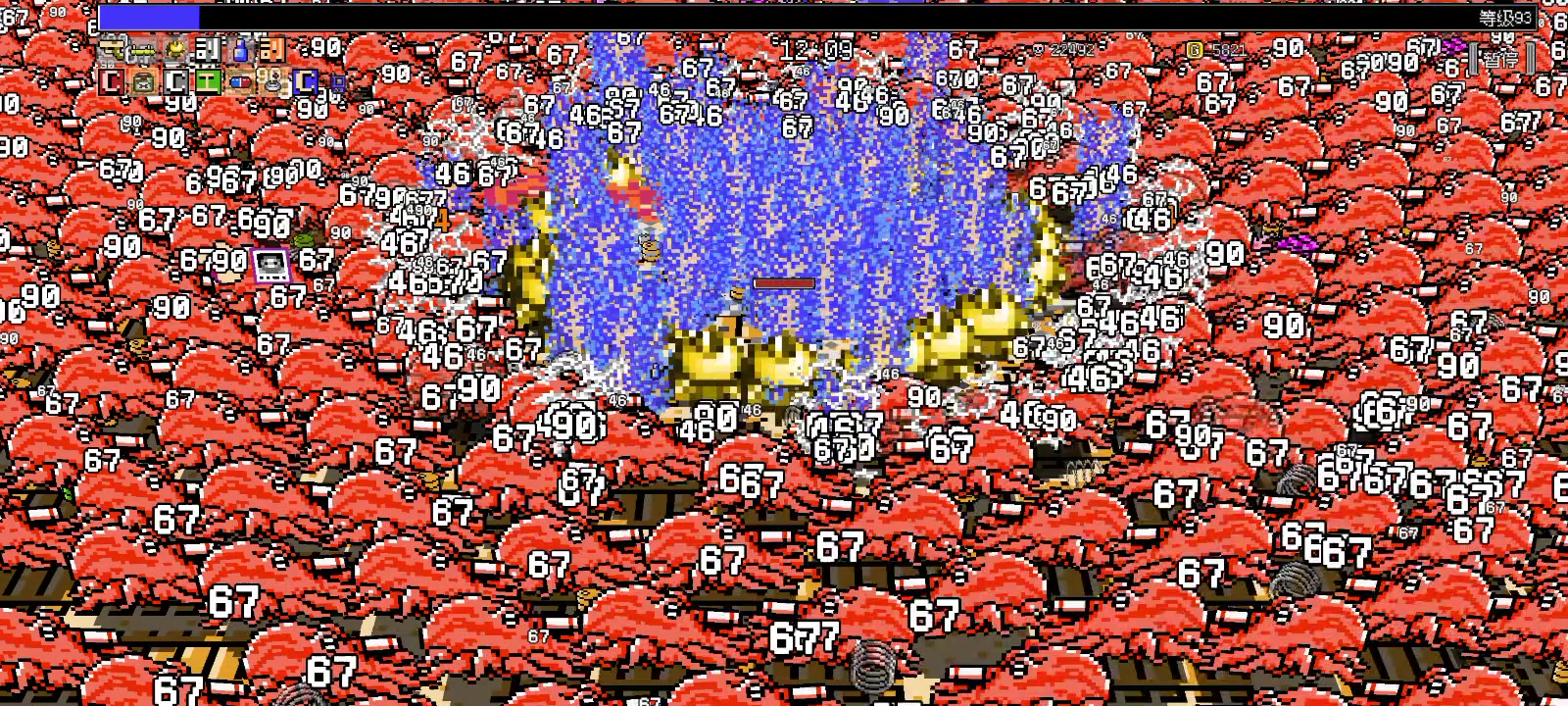 现在怪物数量和血量大增。后期只靠强化铁球(弹数、持续时间、冷却时间、导弹速度),如果输出不够,怪甚至可以卡到脸上。 地上的强化,在强化格子用满的时候再捡,可以超过格子上限。 现在比较强的自保手段是飞龙火+撞机板,后期可以在怪物堆里洗澡。 配了一下现在的武器和强化项。【】为强推荐,()为可选,<>为地上捡。 【火瓶 】、【捡拾范围】 (声纳枪)、【撞击板】 【火焰枪】 、<生命值> (铁球)、(持续