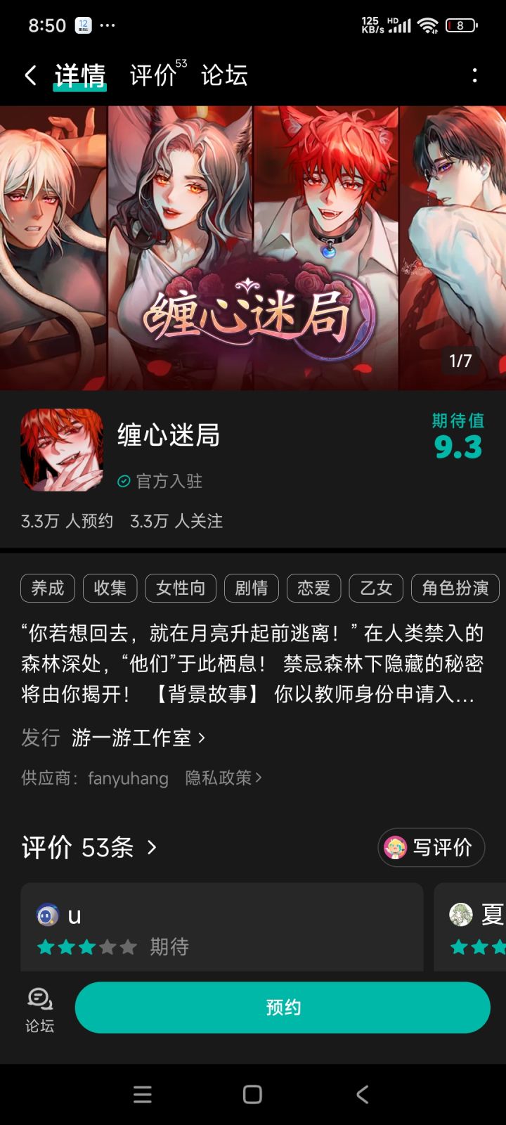 活动时间:2025年8月11日起至2025年9月10日参与方式:1、点击👉预约《缠心迷局》2、截图预约成功页面,粘贴至本帖评论区即可参与抽奖!🎁 奖品:50元京东卡(共3名,活动结束后由官方随机抽取)开奖公示:活动结束后3日内在本帖置顶公布,私信发放奖励。“你若想回去,就在月亮升起前逃离!”在人类禁入的森林深处,“他们”于此栖息!禁忌森林下隐藏的秘密将由你揭开!【背景故事】你以