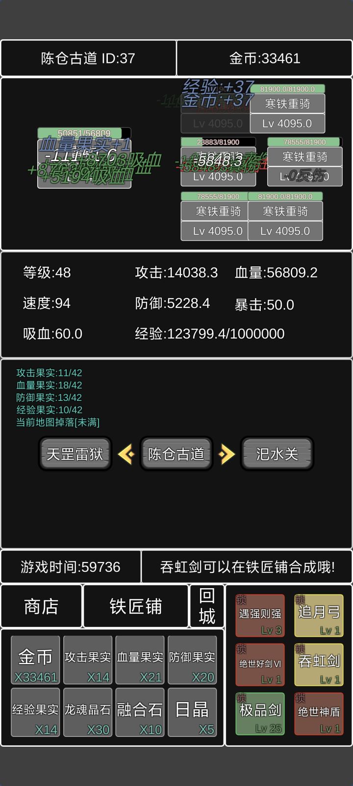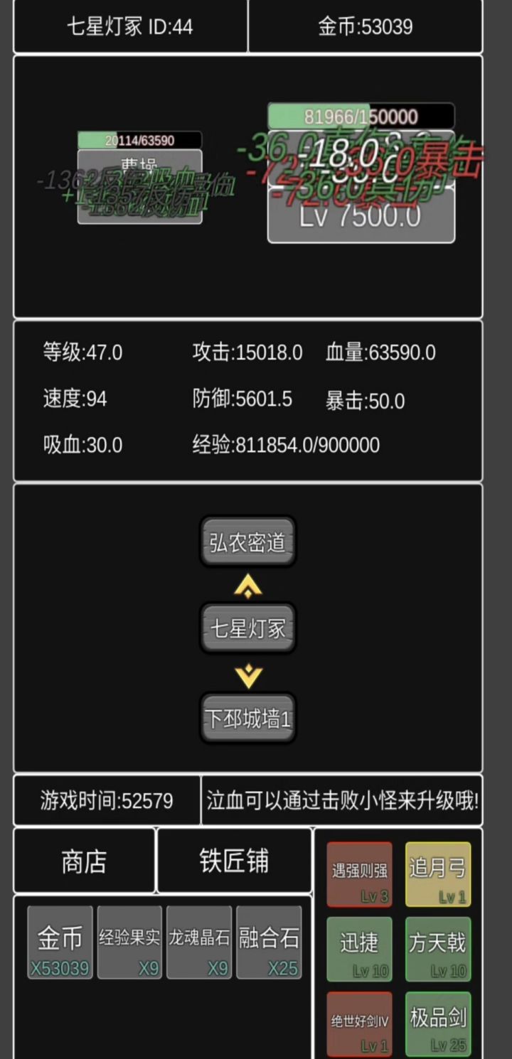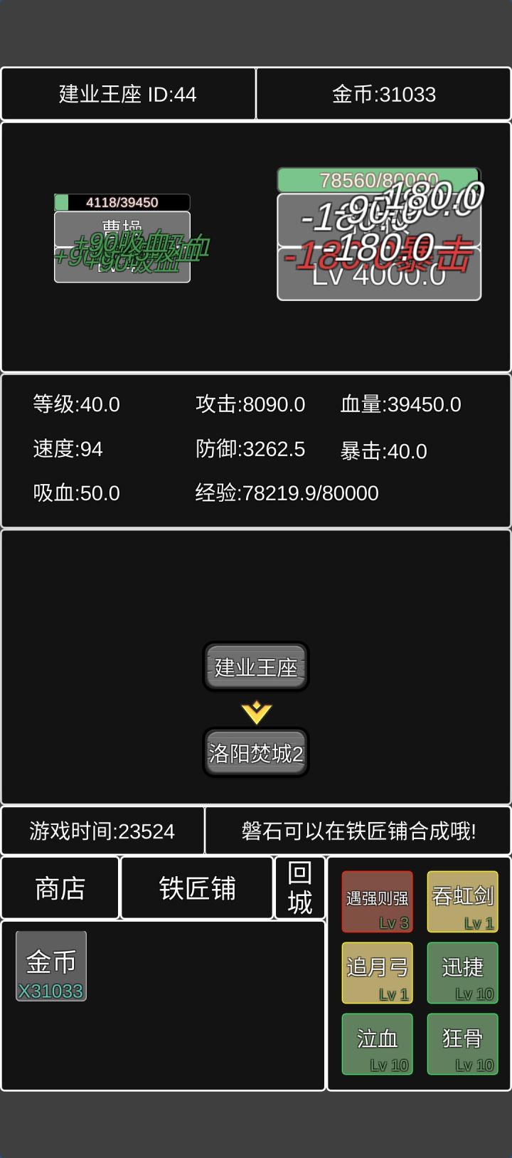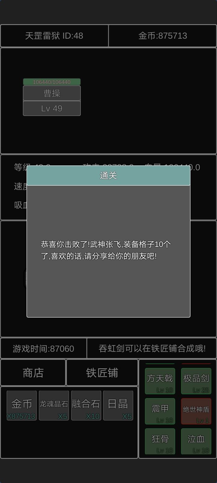 数值设计非常合理,几乎是一环扣一环,尤其是周瑜诸葛亮那里,没有点游戏理解根本打不过去。刚开局可以刷泣血等级然后卖了攒金币,然后做完遇强则强,要多做一把青虹剑和一把追月弓,散件再加上迅捷和满级铁剑满级泣血,六把做好就可以打过魔曹操了。进入第二阶段,先刷方天画戟做绝世好剑,做完以后再做一把方天画戟和满级极品铁剑。此时你的六件套应该是,遇强则强,追月弓,迅捷,方天画戟,极品铁剑,绝世好剑。带着这