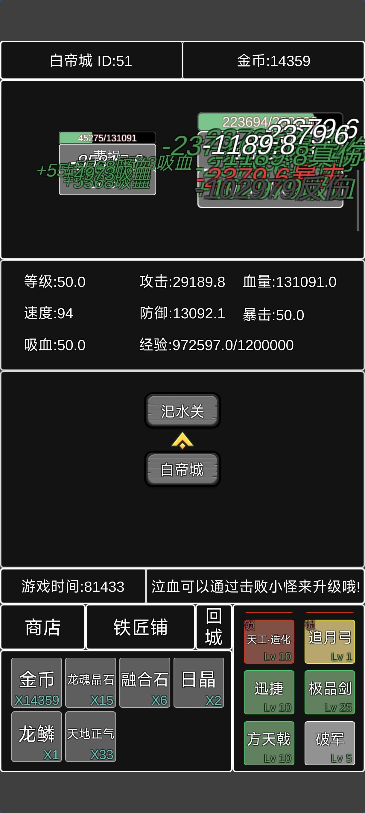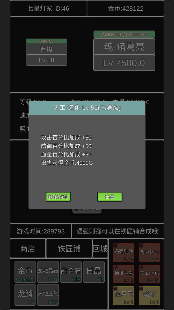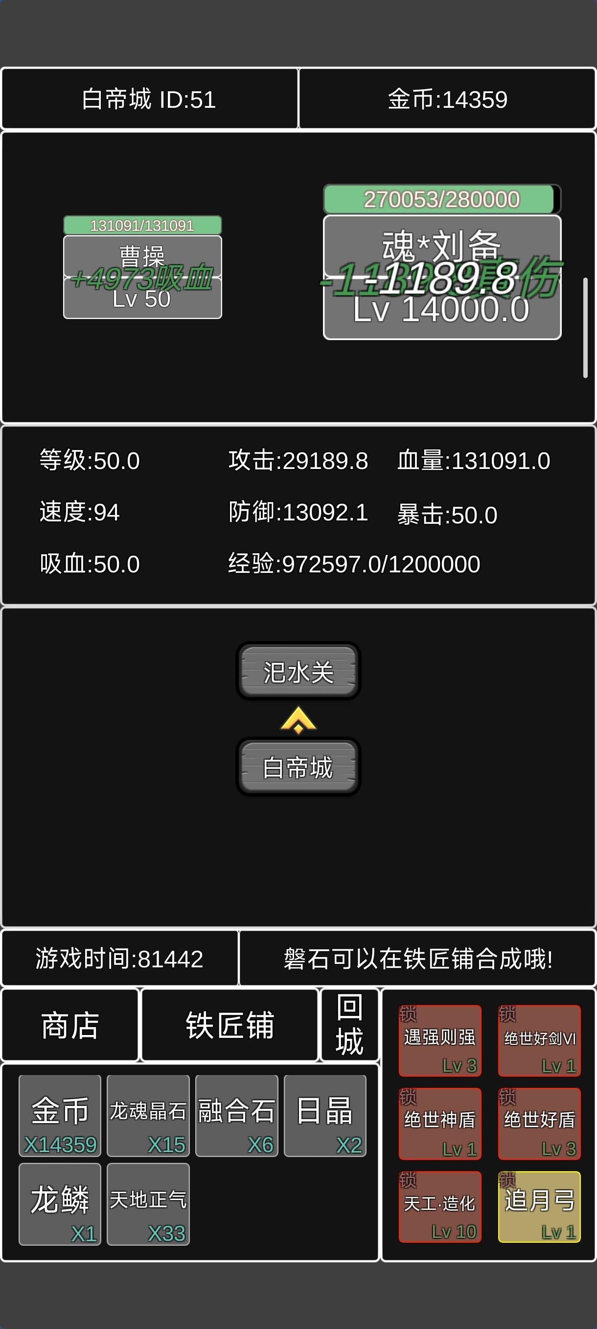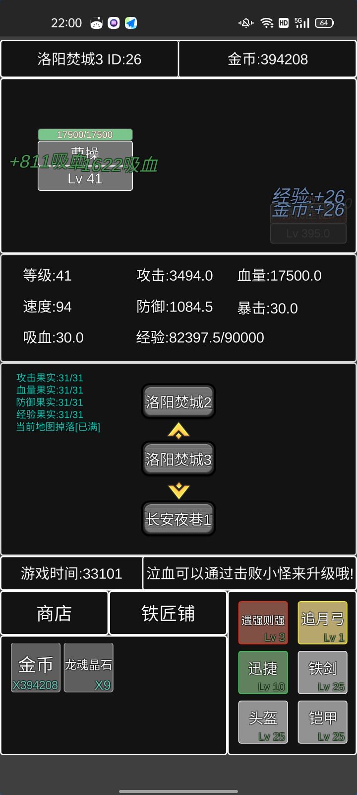 数值设计非常合理,几乎是一环扣一环,尤其是周瑜诸葛亮那里,没有点游戏理解根本打不过去。刚开局可以刷泣血等级然后卖了攒金币,然后做完遇强则强,要多做一把青虹剑和一把追月弓,散件再加上迅捷和满级铁剑满级泣血,六把做好就可以打过魔曹操了。进入第二阶段,先刷方天画戟做绝世好剑,做完以后再做一把方天画戟和满级极品铁剑。此时你的六件套应该是,遇强则强,追月弓,迅捷,方天画戟,极品铁剑,绝世好剑。带着这