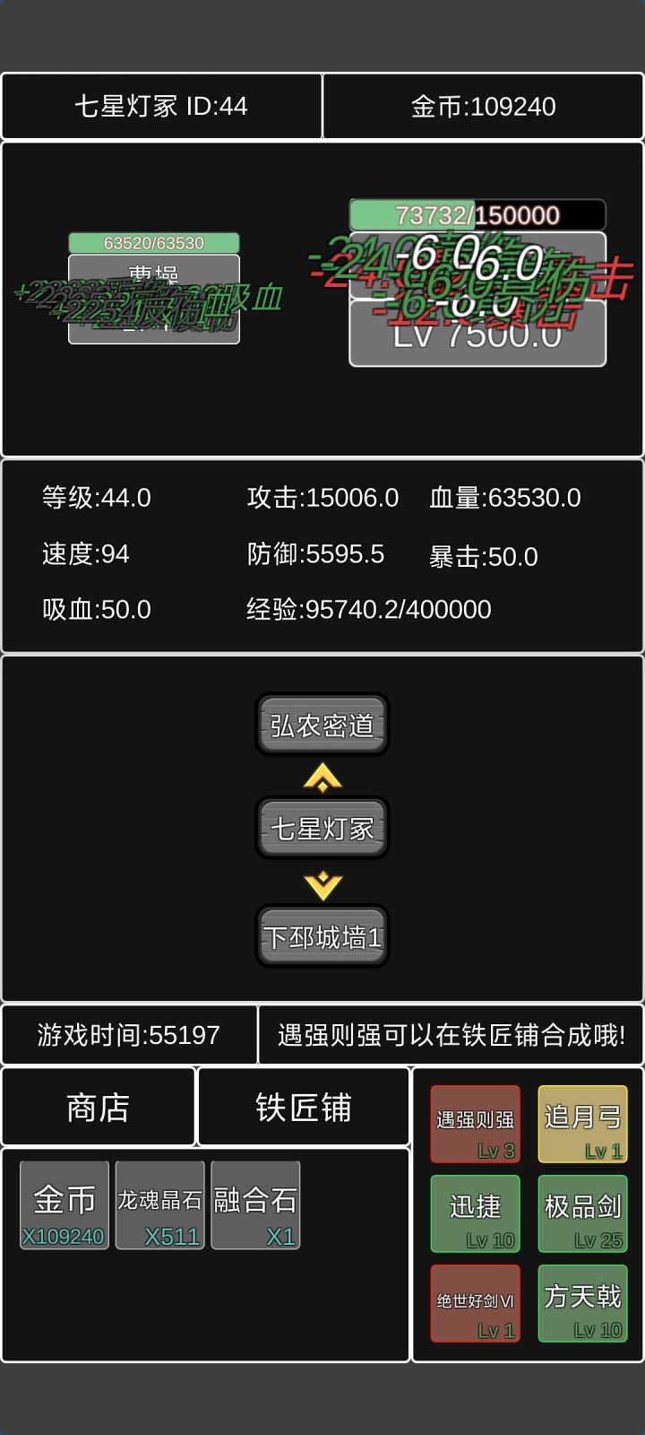 数值设计非常合理,几乎是一环扣一环,尤其是周瑜诸葛亮那里,没有点游戏理解根本打不过去。刚开局可以刷泣血等级然后卖了攒金币,然后做完遇强则强,要多做一把青虹剑和一把追月弓,散件再加上迅捷和满级铁剑满级泣血,六把做好就可以打过魔曹操了。进入第二阶段,先刷方天画戟做绝世好剑,做完以后再做一把方天画戟和满级极品铁剑。此时你的六件套应该是,遇强则强,追月弓,迅捷,方天画戟,极品铁剑,绝世好剑。带着这