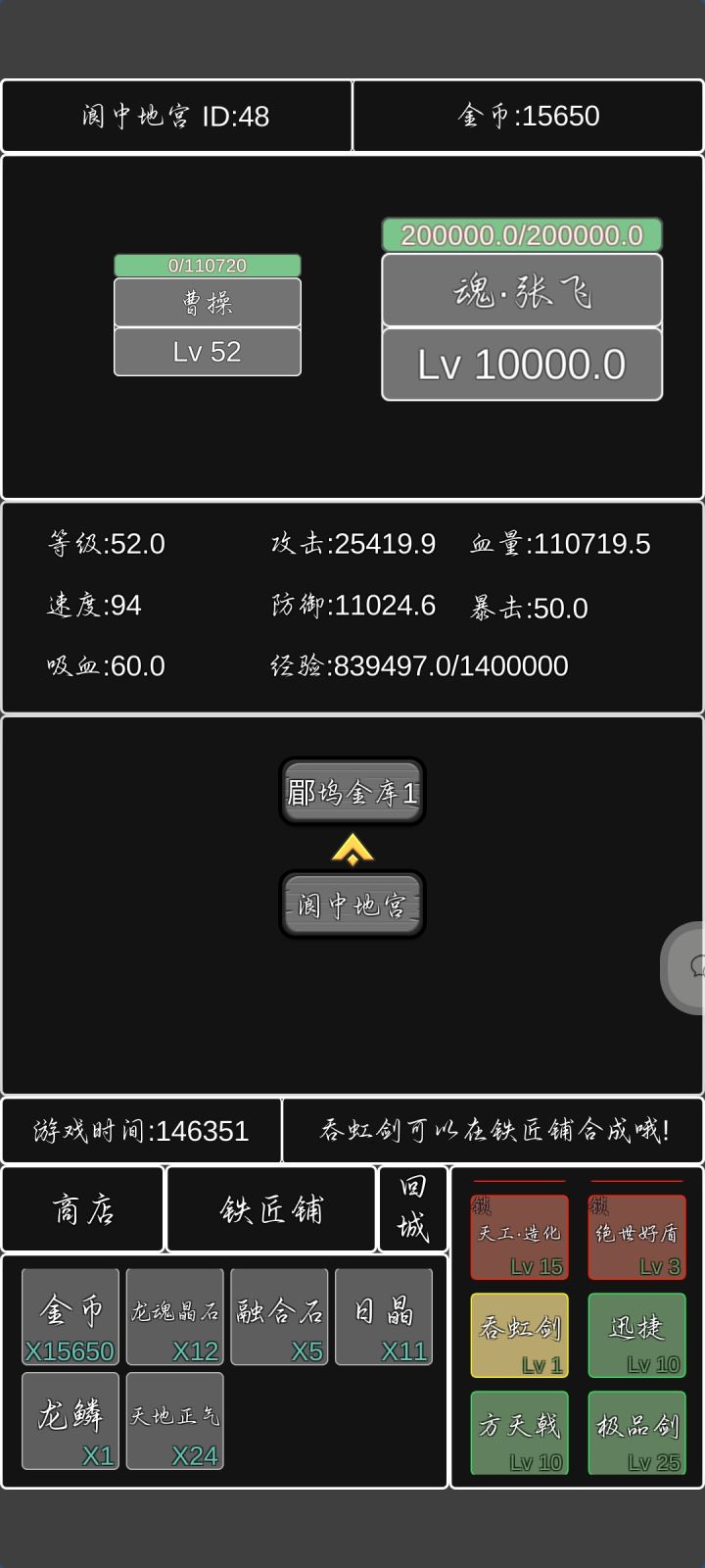 数值设计非常合理,几乎是一环扣一环,尤其是周瑜诸葛亮那里,没有点游戏理解根本打不过去。刚开局可以刷泣血等级然后卖了攒金币,然后做完遇强则强,要多做一把青虹剑和一把追月弓,散件再加上迅捷和满级铁剑满级泣血,六把做好就可以打过魔曹操了。进入第二阶段,先刷方天画戟做绝世好剑,做完以后再做一把方天画戟和满级极品铁剑。此时你的六件套应该是,遇强则强,追月弓,迅捷,方天画戟,极品铁剑,绝世好剑。带着这