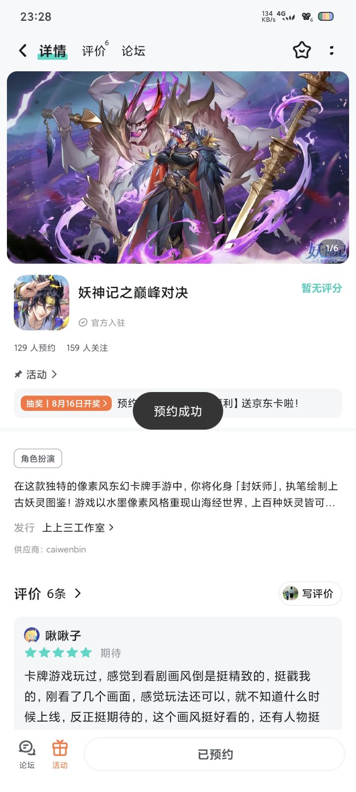 收集百妖,重走聂离逆天改命之路!【京东卡抽奖活动】▶ 参与方式点击关注《妖神记之巅峰对决》并发新帖晒截图 2.在本帖下方评论区分享发帖链接即可【奖品发放】到达开奖时间后,由taptap系统随机抽取符合要求的幸运玩家,自动发放兑换码(对于同一账号大量故意发布评论刷楼层导致其他玩家中奖概率降低的行为的用户,将会可能被取消参与资格!)▶ 活动奖励 活动结束后将抽取1位幸运儿获得1张100元