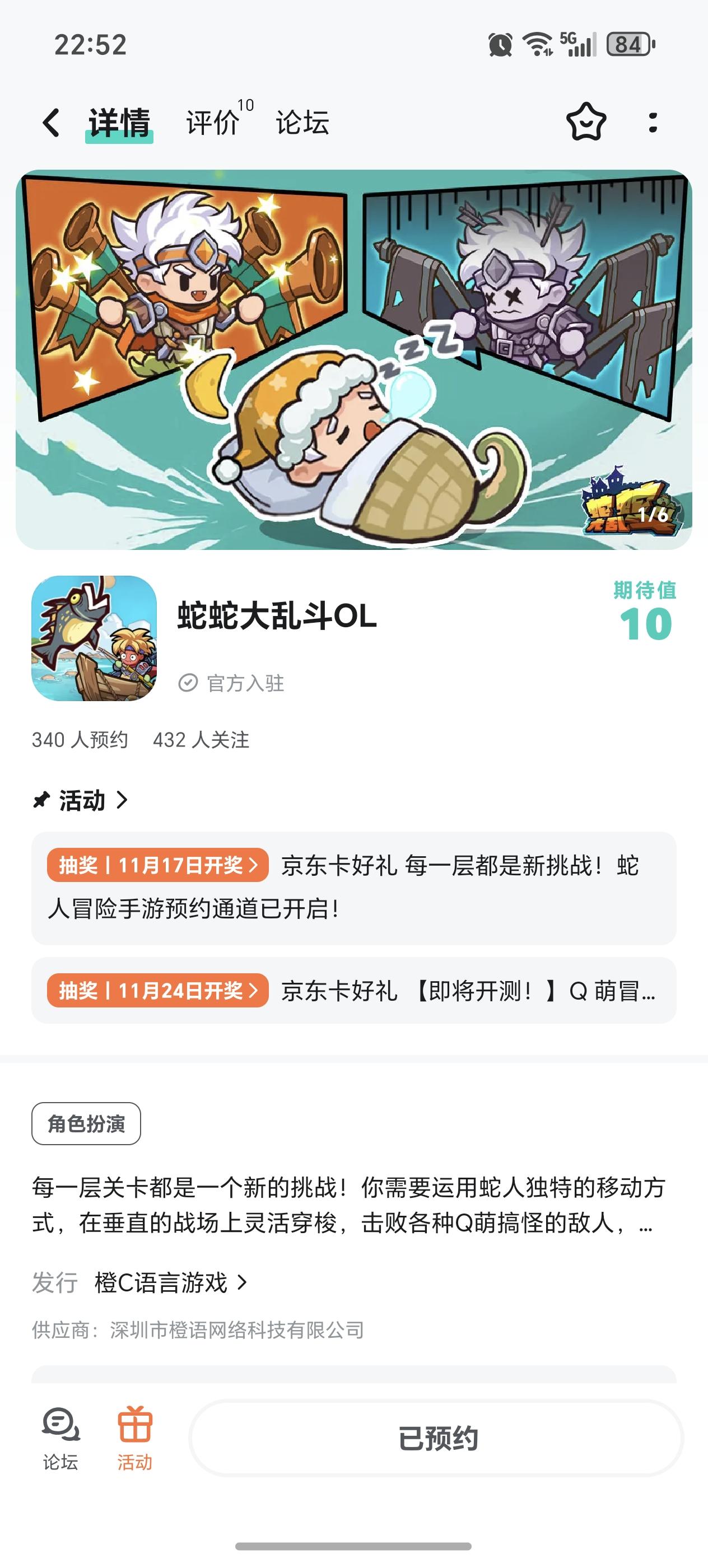 家人们久等啦!✨ 集垂直战场穿梭、Q 萌敌人激战、Boss 破绽突袭于一体的冒险手游,明天正式开测!每一层关卡都是全新挑战,蛇人专属移动方式带你灵活攀跃,呆头呆脑的蘑菇精、气势汹汹的天兵傀儡等你来揍,还有强力守关 Boss 等着被你拿捏!这场刀光剑影中的华丽冒险,明天就能沉浸式体验~为感谢大家的期待,开测福利抽奖同步上线,超多好礼免费送!【京东卡抽奖活动】▶ 参与方式1.点击预约《蛇蛇大乱斗