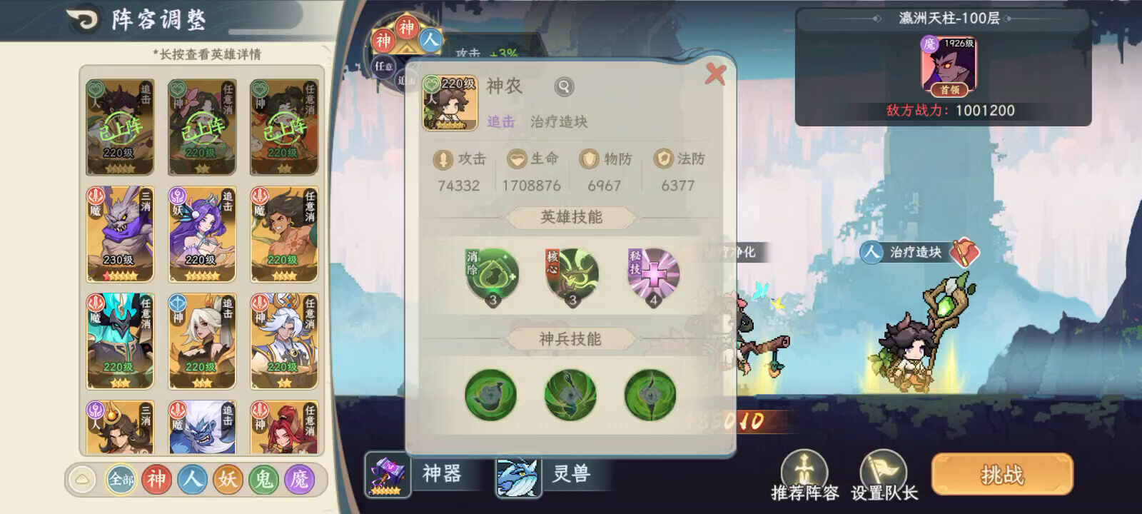 图为339w过739层大佬提供的思路①新版昆仑技巧:(后续版本的高难本的思路)除犼之外的角色选择高闪避/高频率攻击的卡,携带域神神魂和锤子神器(自身面板差不多就放弃回血神器,参考条件:世界boss二队不带奶,血量依然健康),只要保证倒计时结束时我们血量比对面高就能获胜。②阎罗相关(也是buff科普)很多人都觉得这个神4效果一般,实则不然我们可以给对面上流血或者灼烧使得强制让对面一直获得增