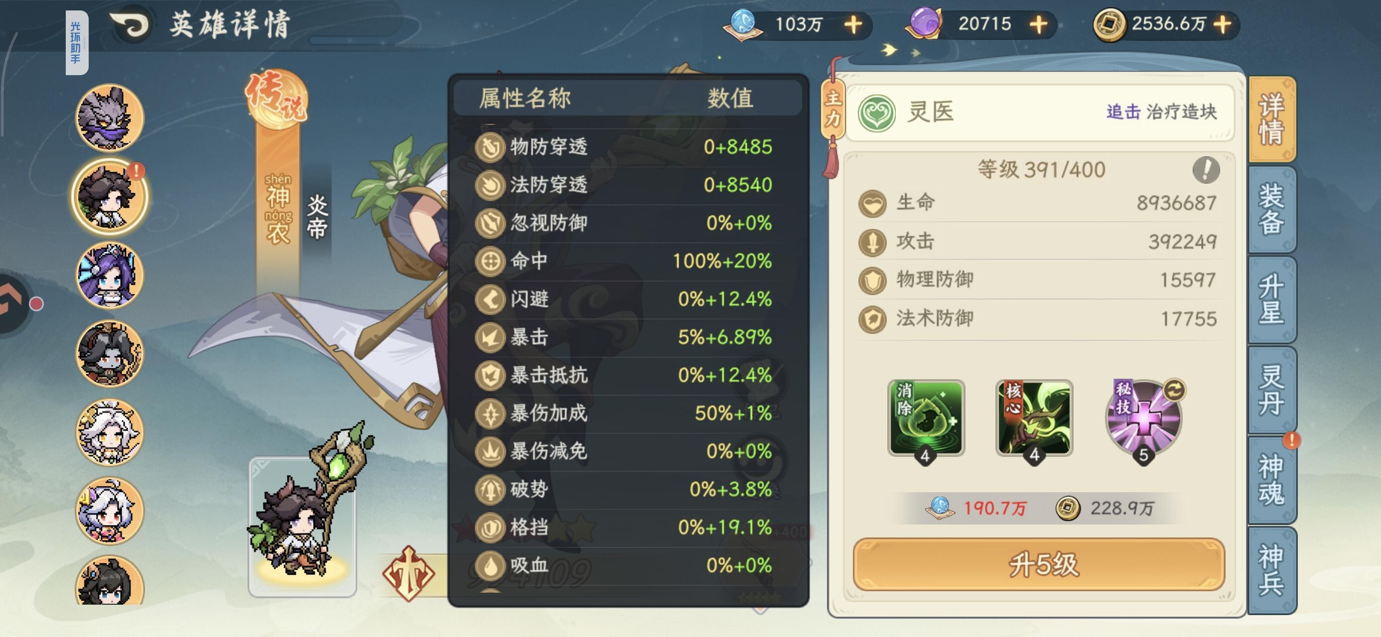 我今天刚通关的昆仑,46天的零氪玩家,来分享一下通关配置和心得,嫦娥7+5,神农10+5图1,图3是嫦娥神农不带神魂的面板图2,图4是圣物情况图3,图6是神兵洗练神魂看清楚位置,命魂没+15,所以我没洗3格挡力魂可以不升,+9也没多少资源,随便天地魂用+15星神,伤害减免和防御加成(几星无所谓,没有高星拉低星就行,舍不得拉低星就忍一忍)锤子要9星秘技带回血除了有巢和BOSS都能打
