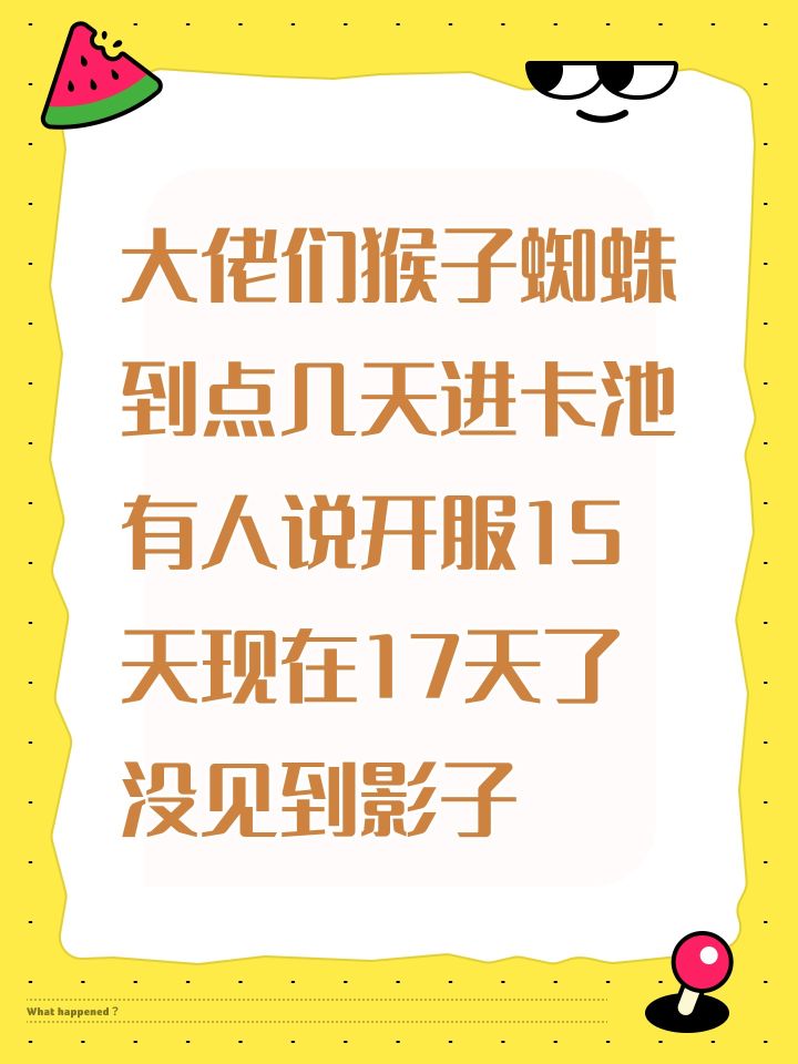 大佬们猴子蜘蛛到点几天进卡池有人说开服15天现在17天了没见到影子