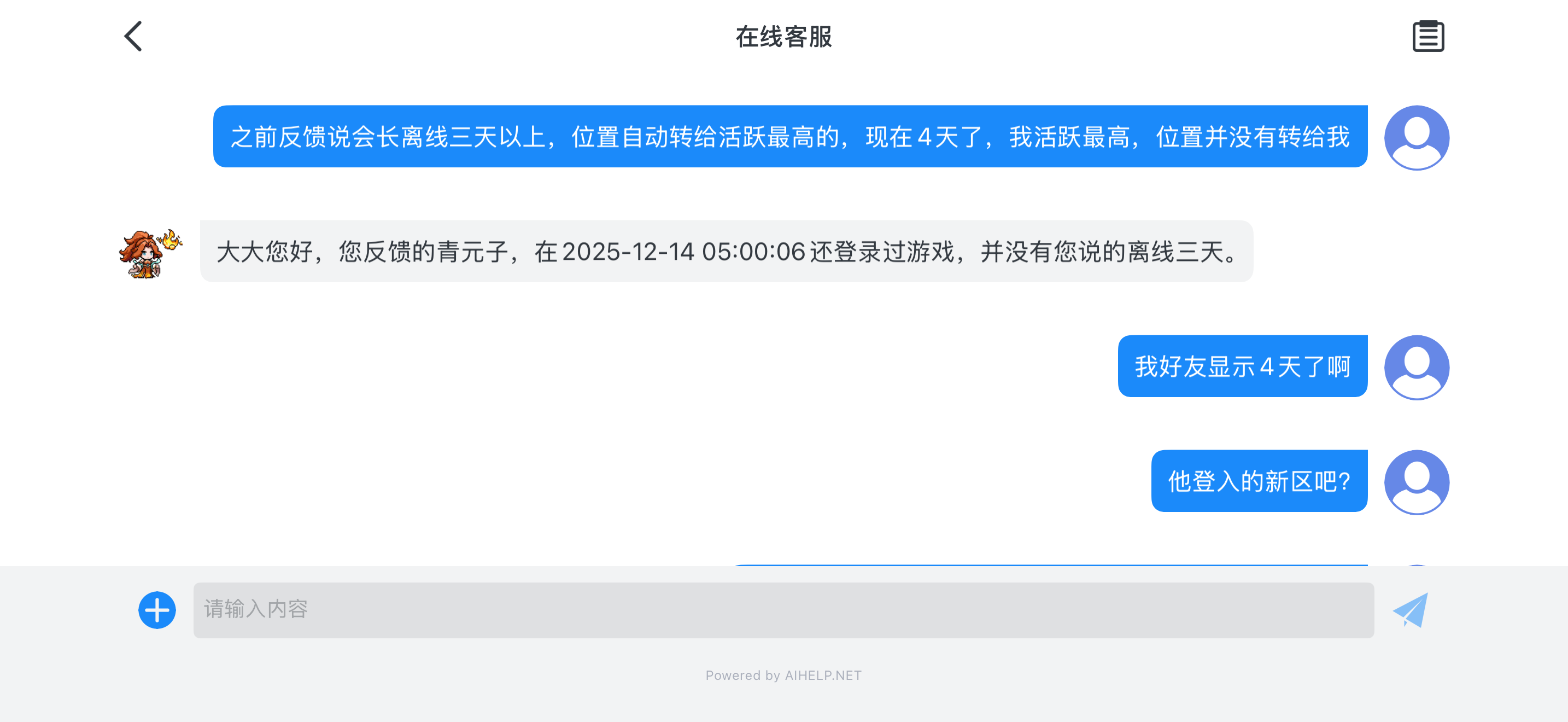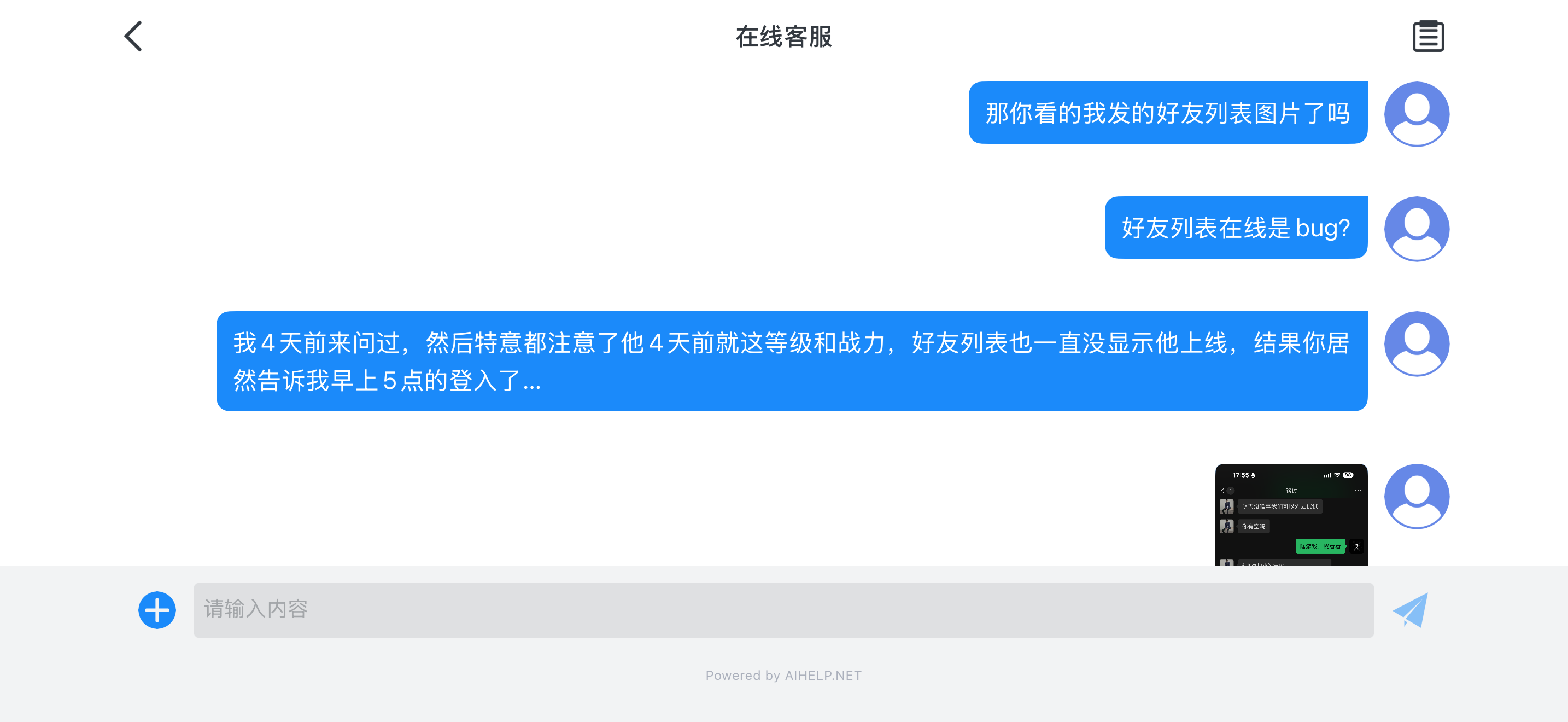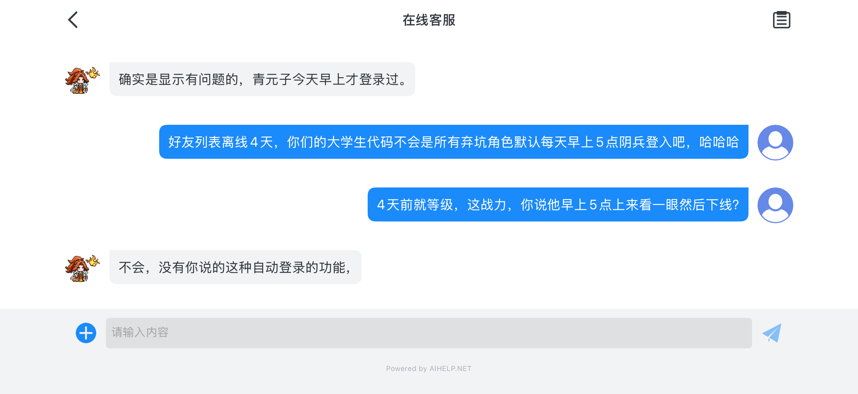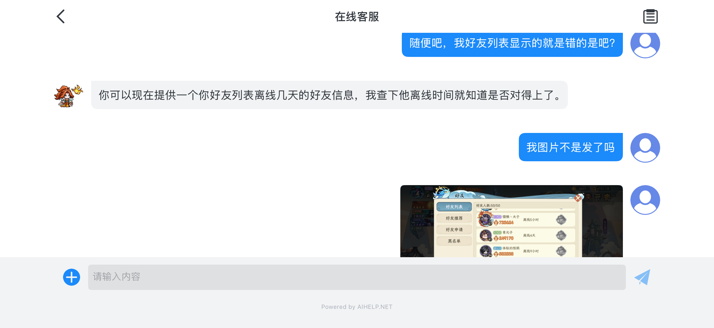 给大家看个笑话,好友列表显示4天前上线,客服说他查了早上5点有登入,就这脑子,这游戏不凉谁凉???