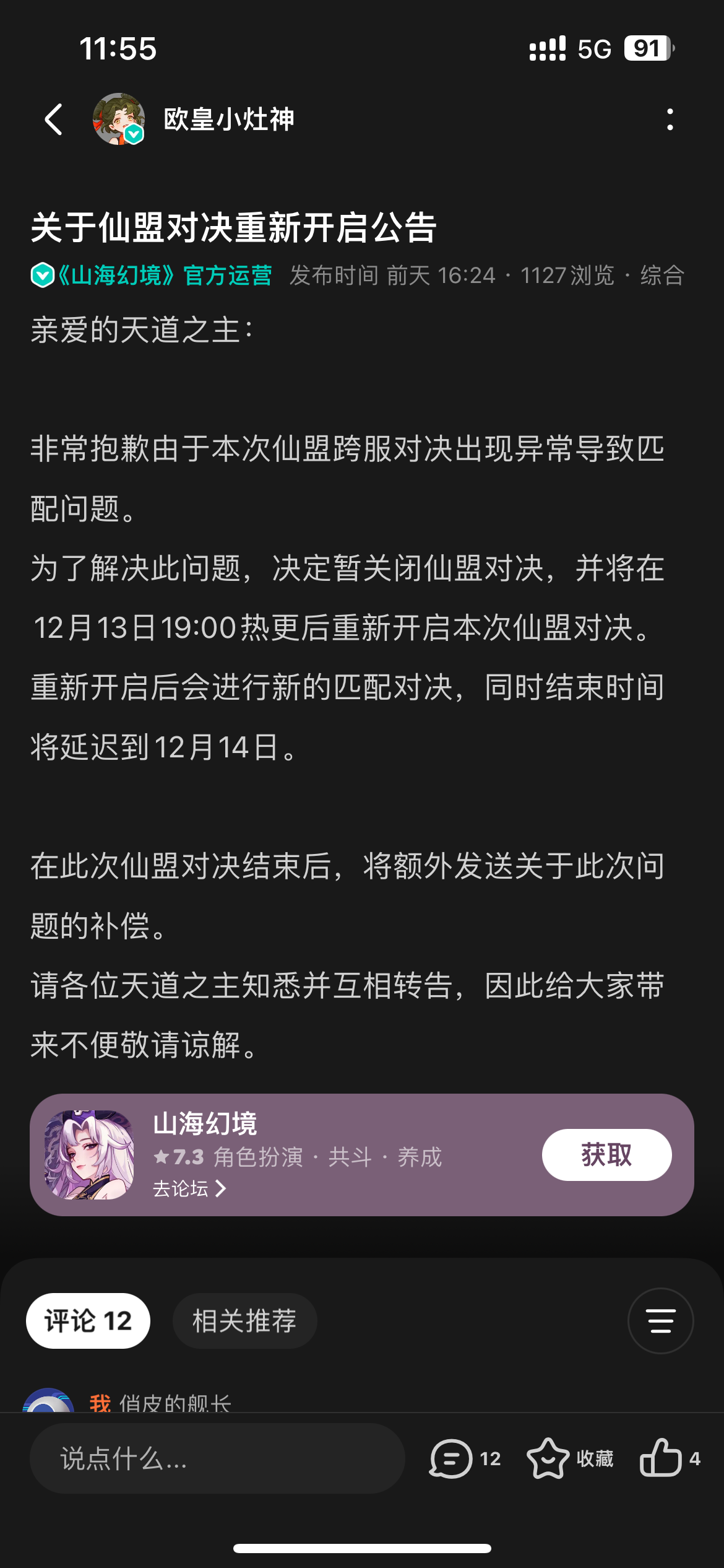 #山海幻境 对决已经结束了,说的补偿什么时候发?