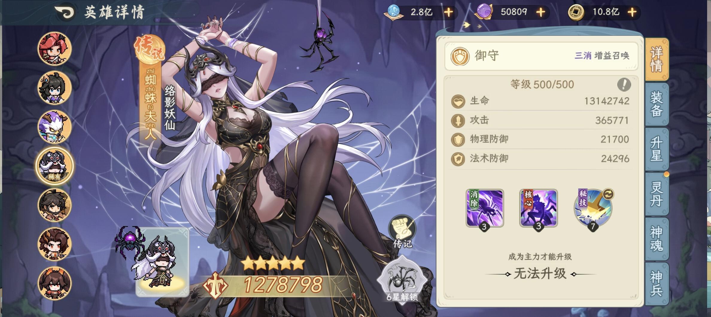 大家好,我宣布这是本游戏目前最好看的角色没有之一!话不多说先看下面的实战数据可以看出蜘蛛夫人在两队一起打boss的环境下是甩开九尾狐很远的,最关键就是来自她核心技能的造块能为自己与孙悟空稳定造块使得孙悟空能稳定触发追击技,不会像携带其他三消角色遇到卡块的情况,核心技造两个块的高产也是大大提升了阎罗的输出。在星级升到4星解锁3级核心技时个人认为是最强的一个阶段,高频率的三消无视技能冷却,达到与回蓝