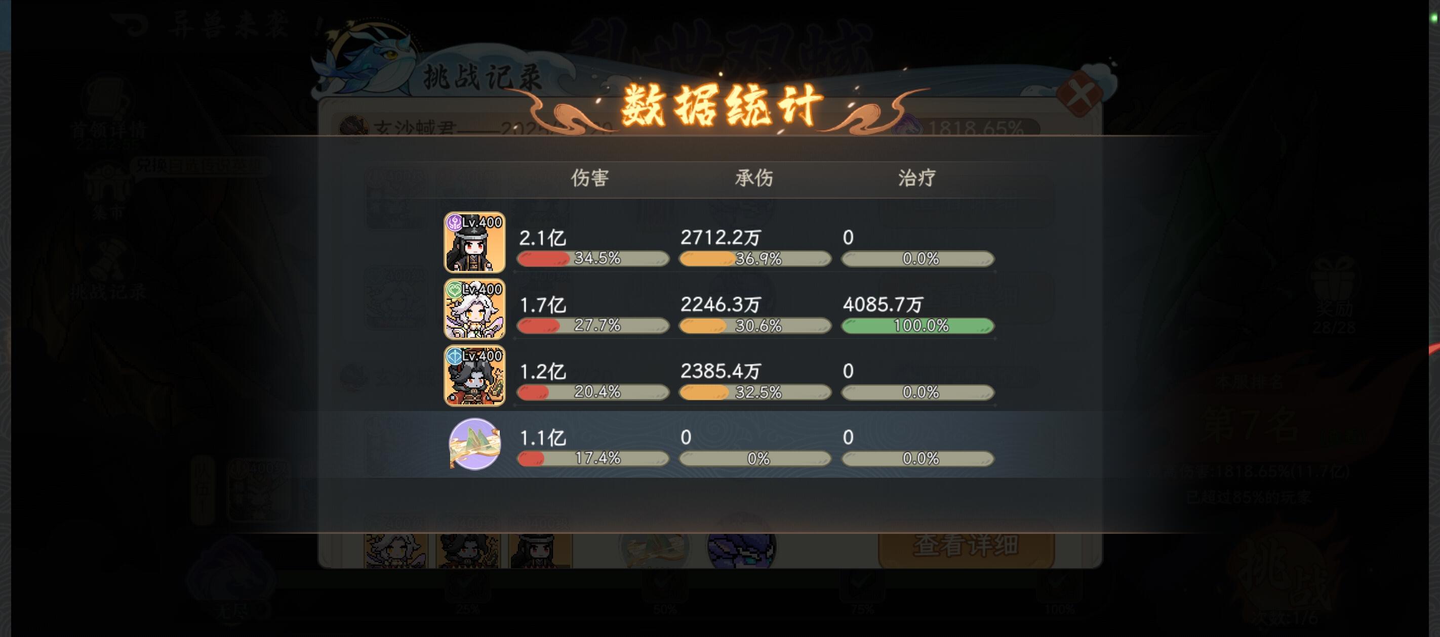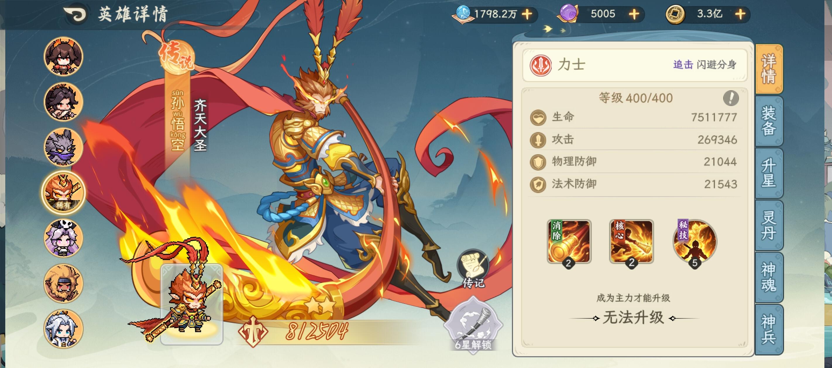 今天猴子2星了 大提升🤣🤣之前帖子里面提到过出了猴哥boss要换成五输出试试效果可惜了这猴子强行绑定狐狸 那就只能下掉蚩尤了目前看来在带狐狸的情况下二星猴子输出还是非常超标的 养完猴子我的三队pvp也算是正式做完更新下狐狸和猴子配置狐狸秘技陨星 神魂木域圣物镰刀 如果10星第二个感觉可以给火石猴子神魂风日圣物蕴气 启运(我走的秘技路线)