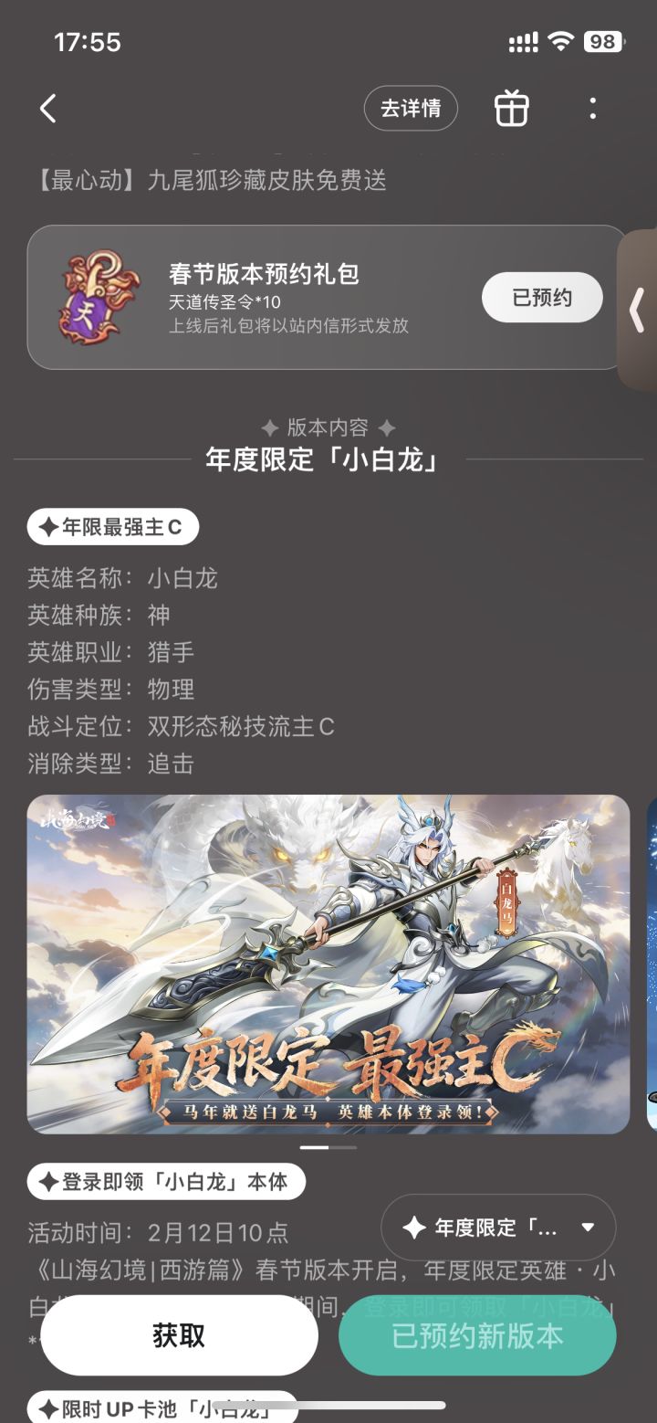 【0212春节版本】年度限定小白龙登场,版本福利爆料!(含礼包码