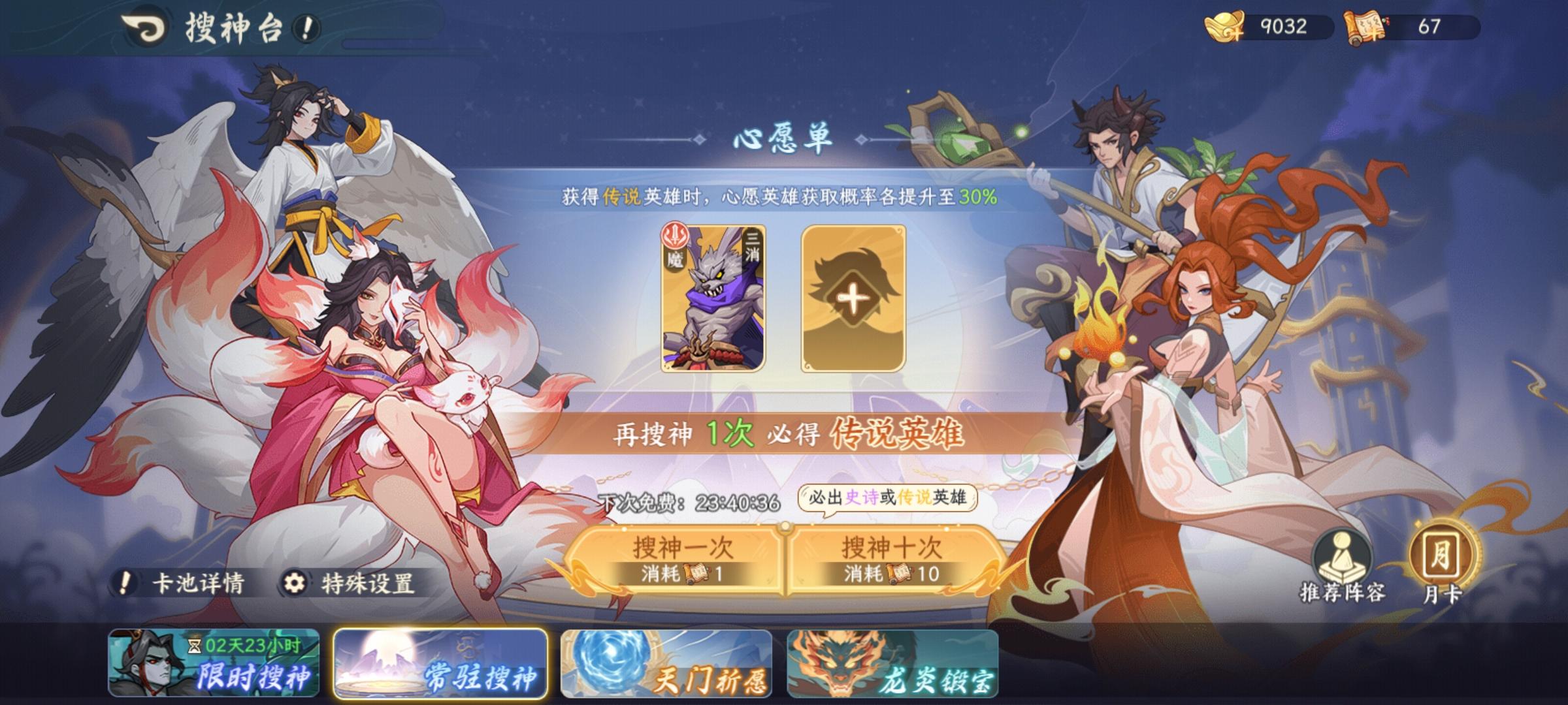 我心愿只抽吼和嫦娥可以吗,不练文鳐,然后抽神农刑天这个思路有没有问题啊