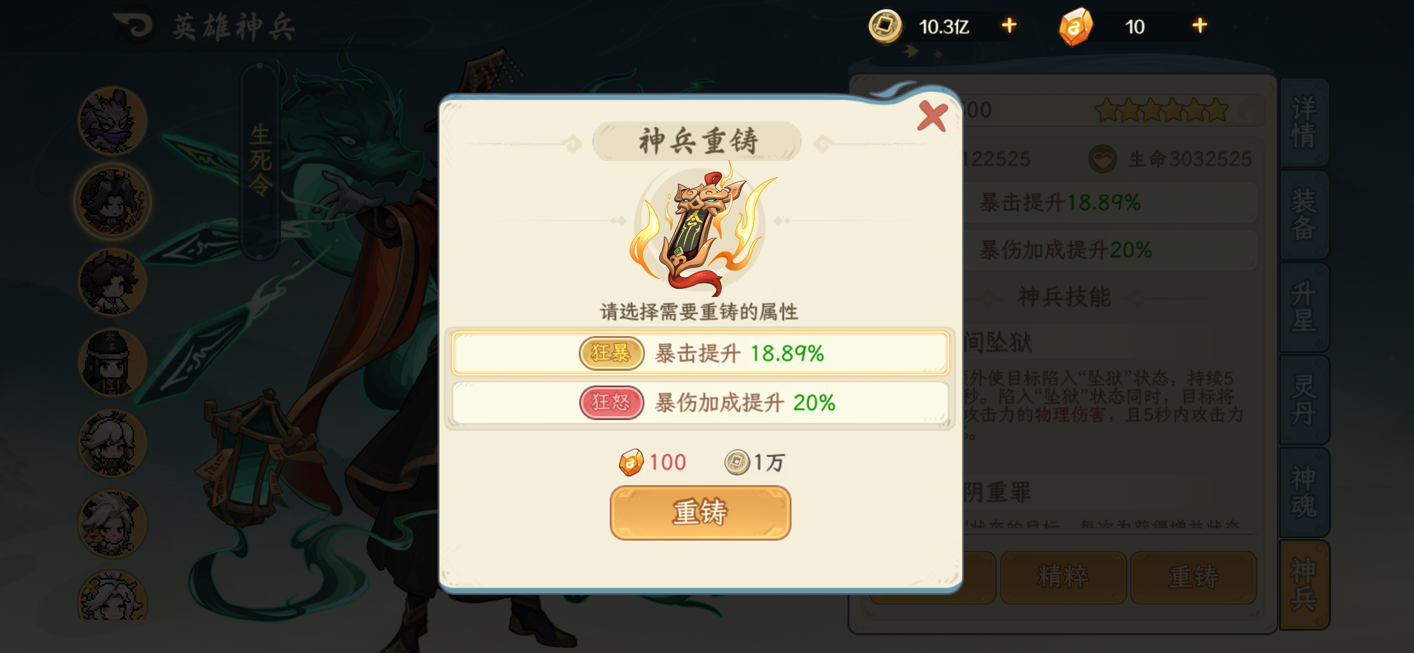 紫色丹药获取也太少了,仙盟的炼丹房也不能升级,就那么几样东西,并且也没个详细介绍,炼丹时影响成功率的五行属性到底怎么提升?还有洗炼神魂时能不能加一个介绍,都能洗什么属性,像洗炼神兵属性时那样就行啊,总感觉天地神魂里面没有闪避属性。并且神魂获取也太少了,希望分解神魂可以产出魂用于再合成!再有就是刷一层天命,下一层就会卡人物,需要大退才能正常刷下一层,等刷完再去刷蓬莱仙境,最后一关还会卡住,还要大退!
