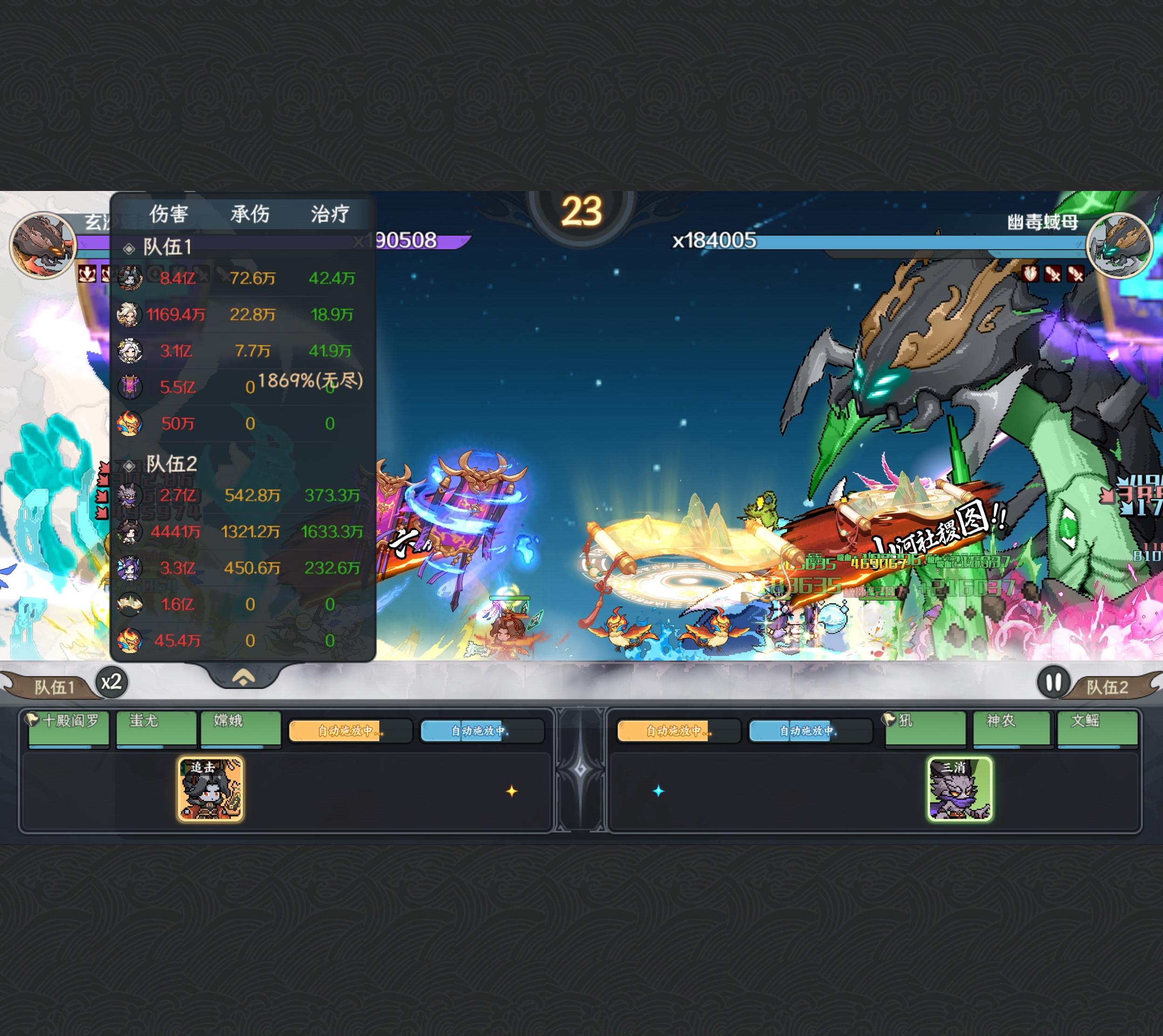 大家好,这期给大家分享一下跨服boss的思路,这个boss跟牛牛其实挺像的,都是一队法伤一队物理的配队,区别就在于每一队吃的减益buff是不共享的。 配队推荐 第一套:犼 嫦娥 蚩尤 孙悟空 阎罗 九尾狐一队为什么选择嫦娥跟蚩尤,而不是文鳐跟小金乌,首先蚩尤可以跨队加攻击力,而且只需要他的秘技,升