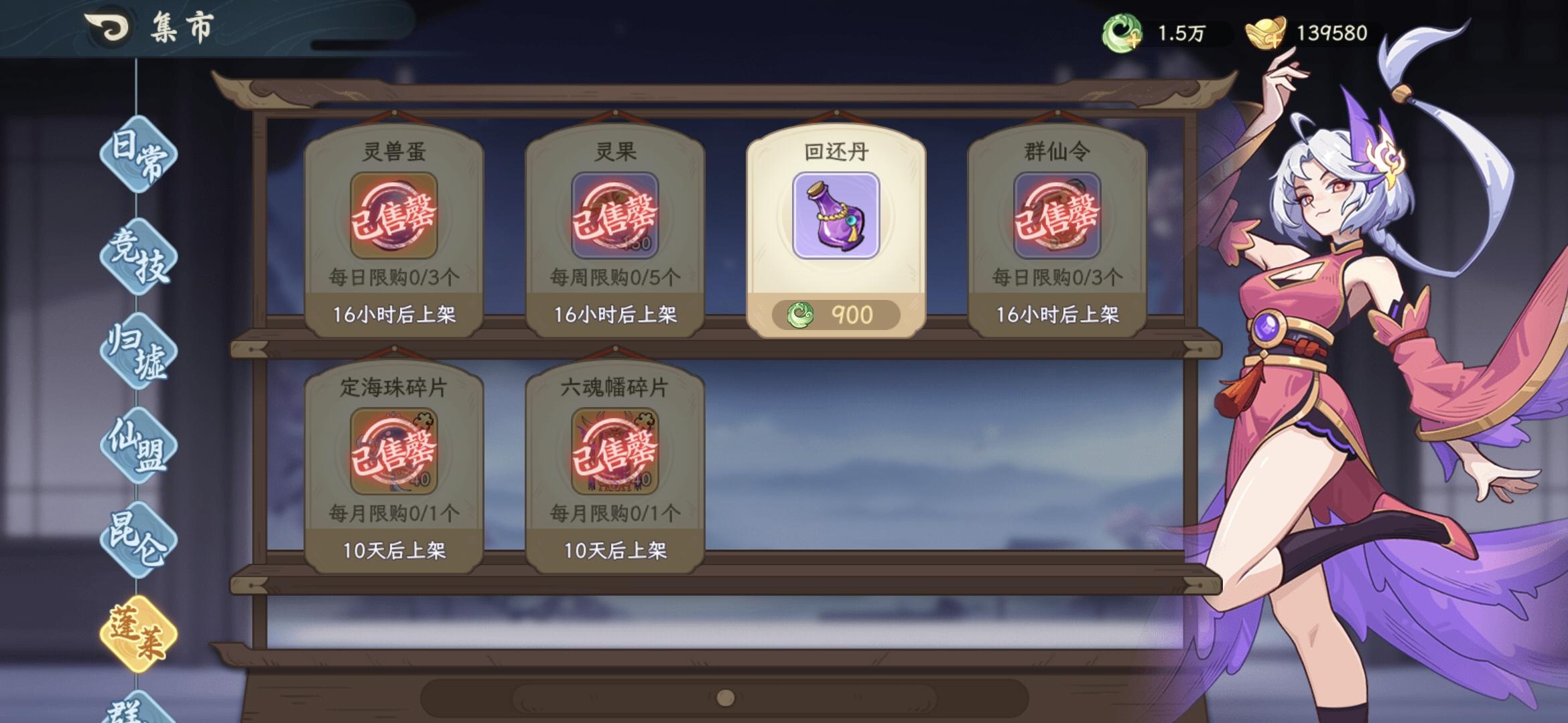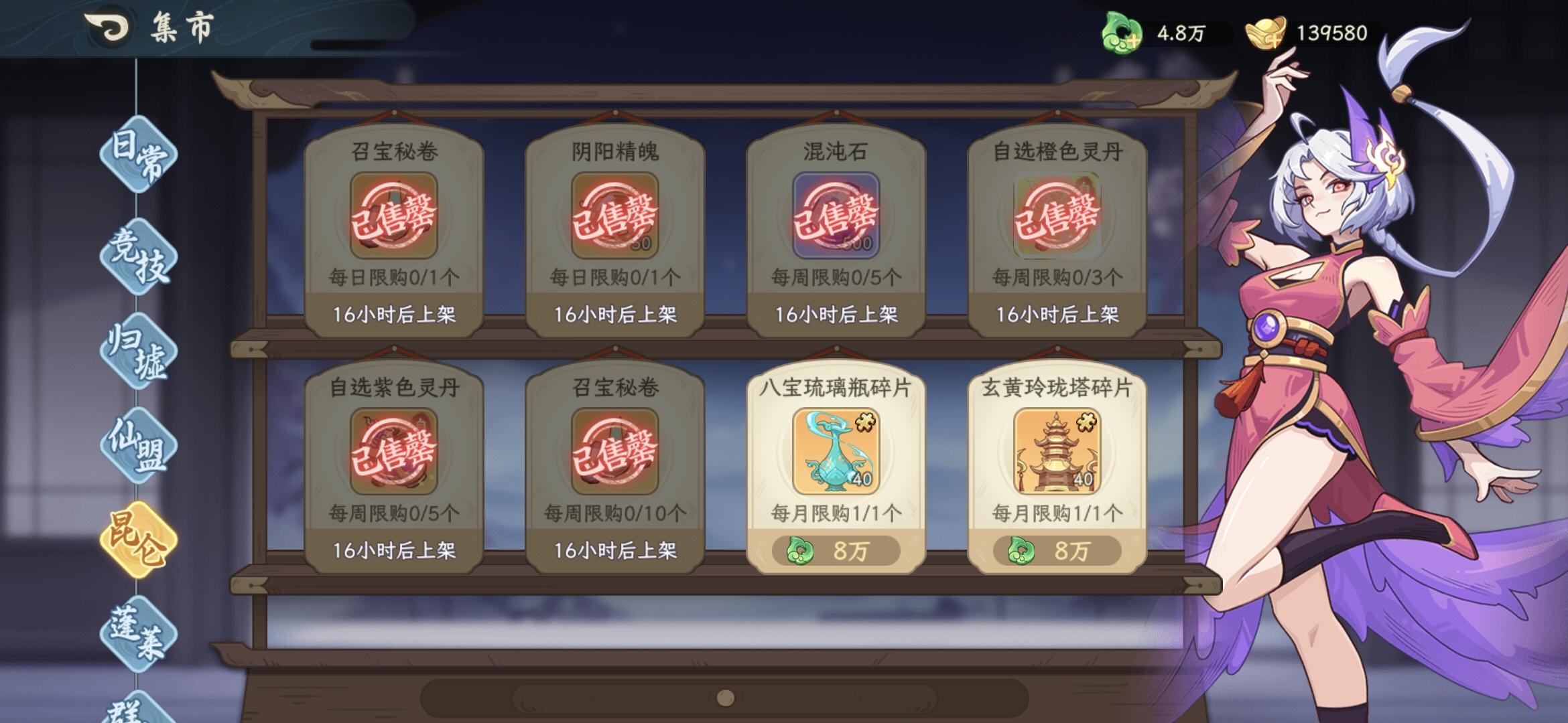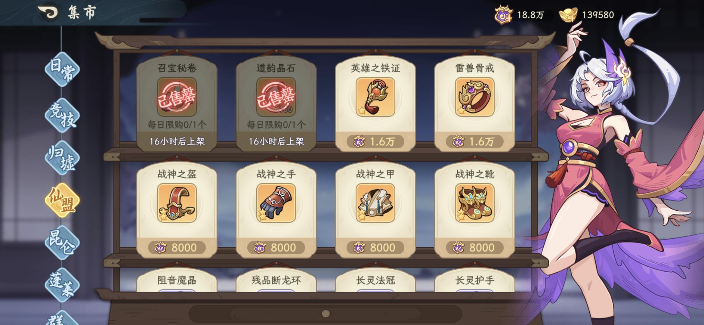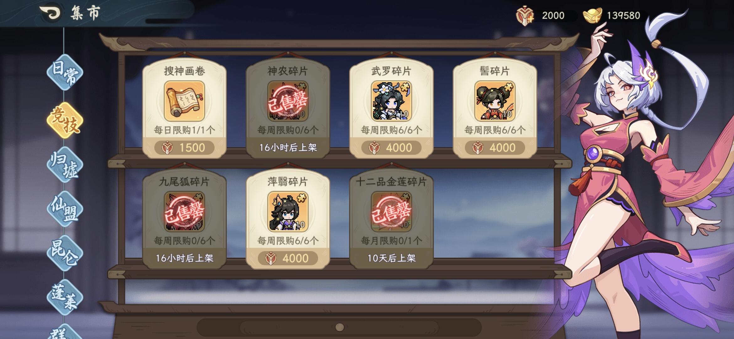 首先声明,本人双卡,偶尔会氪几十活动。首先是商店买什么,我发截图,一般每日都按照这个买。升级法宝那个有点贵,非双卡或者够用不买。其次就是阵容:我就是按照正常吼农鱼开局的。发现神农越来越没位置。这个游戏其实只需要两队第三队是伪概念。根据不同情况构筑两个队伍就够用了。个人认为吼优先级最高,兼顾发动机和输出,尤其是单体输出,输出高的比他脆,比他肉的输出低。其次是嫦娥,全游戏最全能的角色。之前我