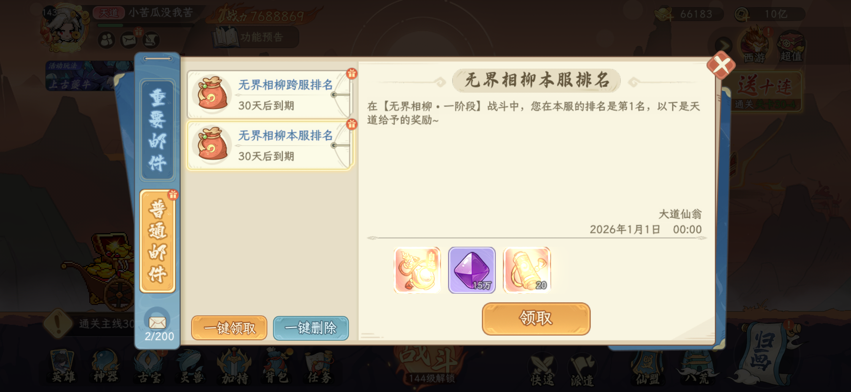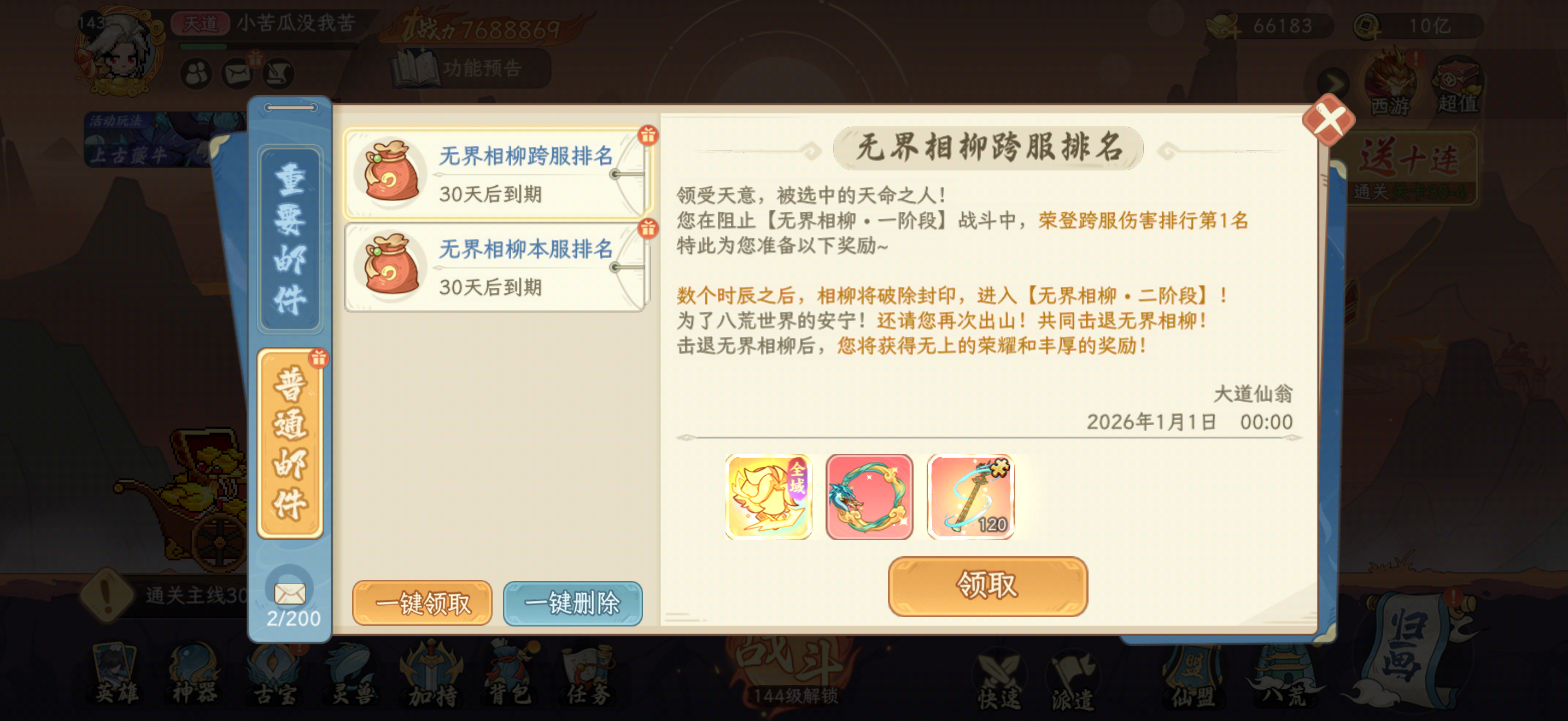 庆祝跨服和本区相柳boss伤害第一名 #山海幻境