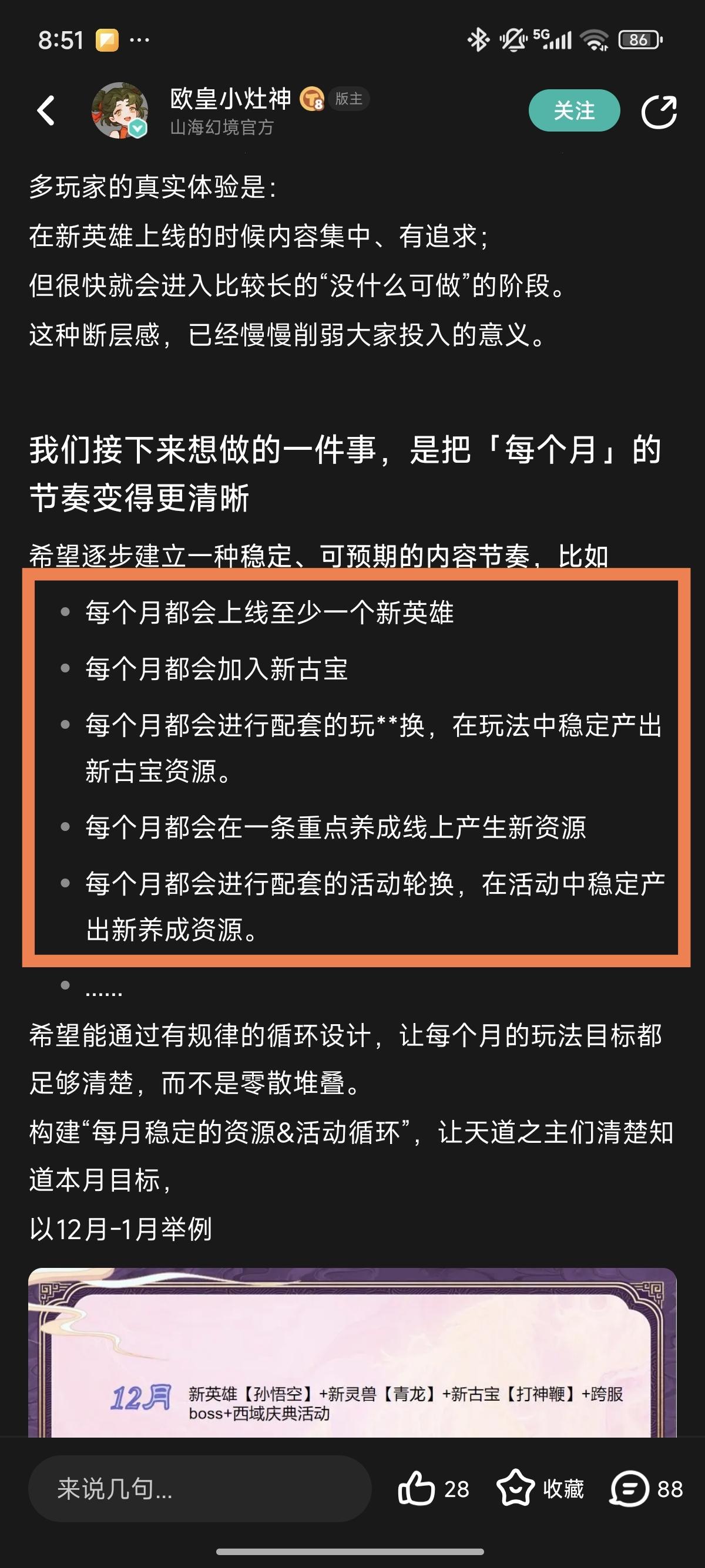 元旦活动都没有,居然敢狮子大开口说一个月就出新英雄,出新玩法,我知道你要说比如,我说的就是你这个比如,我知道你没有这个能力,但是你是这么想的?随便打个工的都明白,这么多游戏大厂都不敢这么开口,你一个Bug小游戏还夸这海口。真的,人无语的时候只会笑,前面挨这么多打不记性,只是觉得割的爽。