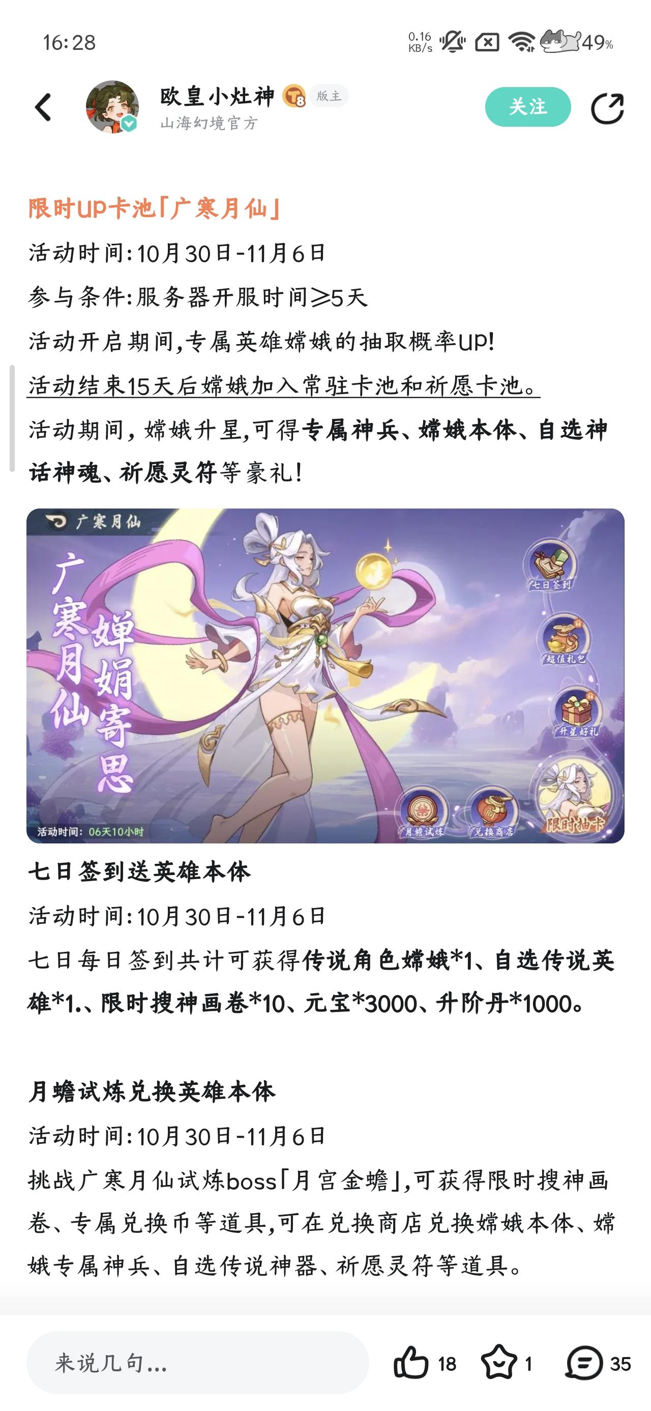 有很多人问新手开局玩什么,有人推嫦娥有人推吼农鱼游戏是10.16上线的,嫦娥是10.30上线的,和第一批玩家最长只间隔了14天,有人可能不知道,山海幻境是换了建模又端上来的游戏,所以说存在一批“老玩家”,这批老玩家带着经验重磅推出了吼农鱼,吼金鱼,黑农武罗等一系列阵容因为嫦娥定位是人族奶妈和神农冲突,在一段时间的印证下,吼农鱼的强度毋庸置疑,嫦娥对比神农高贵的造块加暴击的能力略显