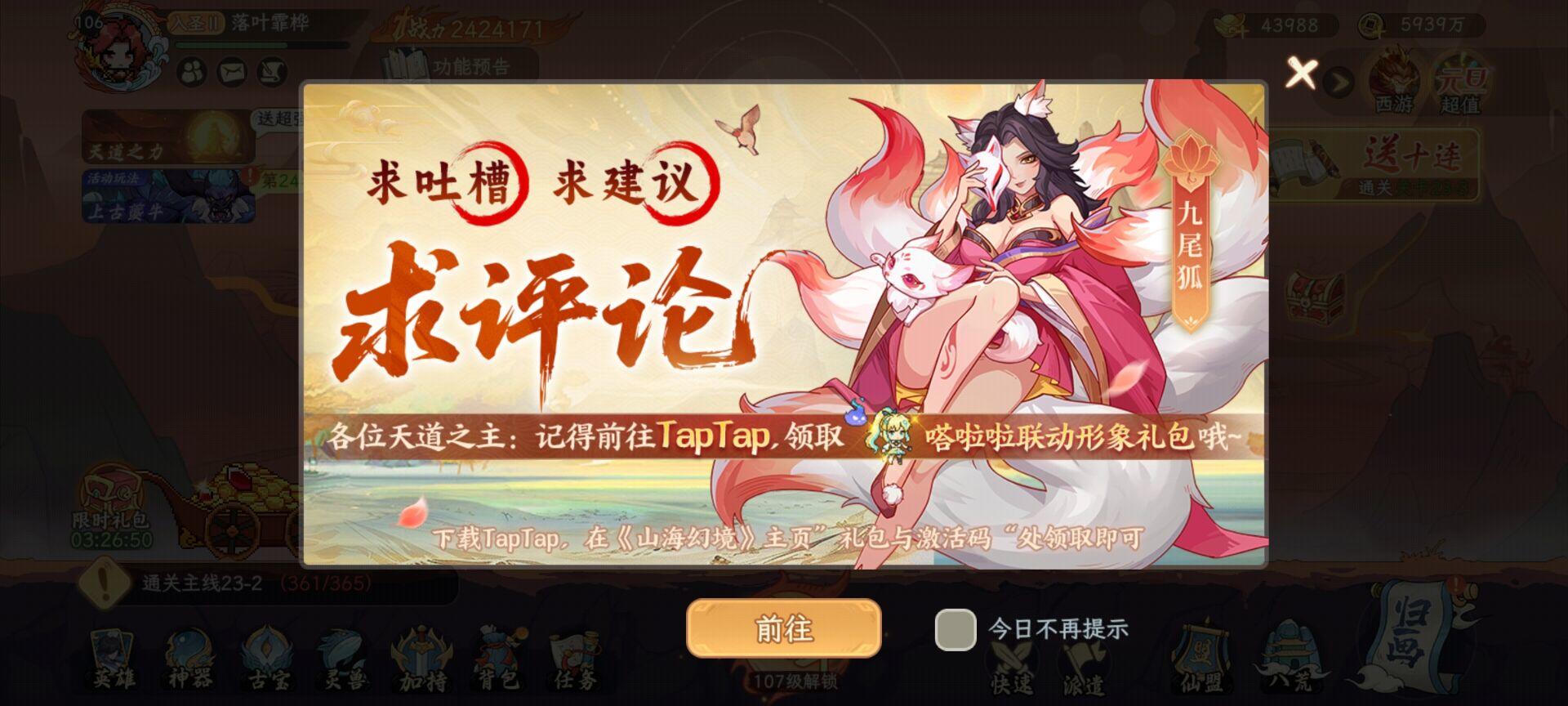 🎉活动时间🎉2025年12月31日 12:00:00 ~ 2026年1月12日 23:59:59活动结束时间:2026年1月15日 23:59:59礼包码有效期:2026年1月31日 23:59:59,请在有效期内使用。🎉活动说明🎉⭐累计签到7天,总共可领取搜神画卷*10+元宝*1000⭐活动礼包每个Tap账号仅可获得一次,每个游戏账号仅可使用一次🎉活动入口🎉⭐ Tap搜索“山海幻