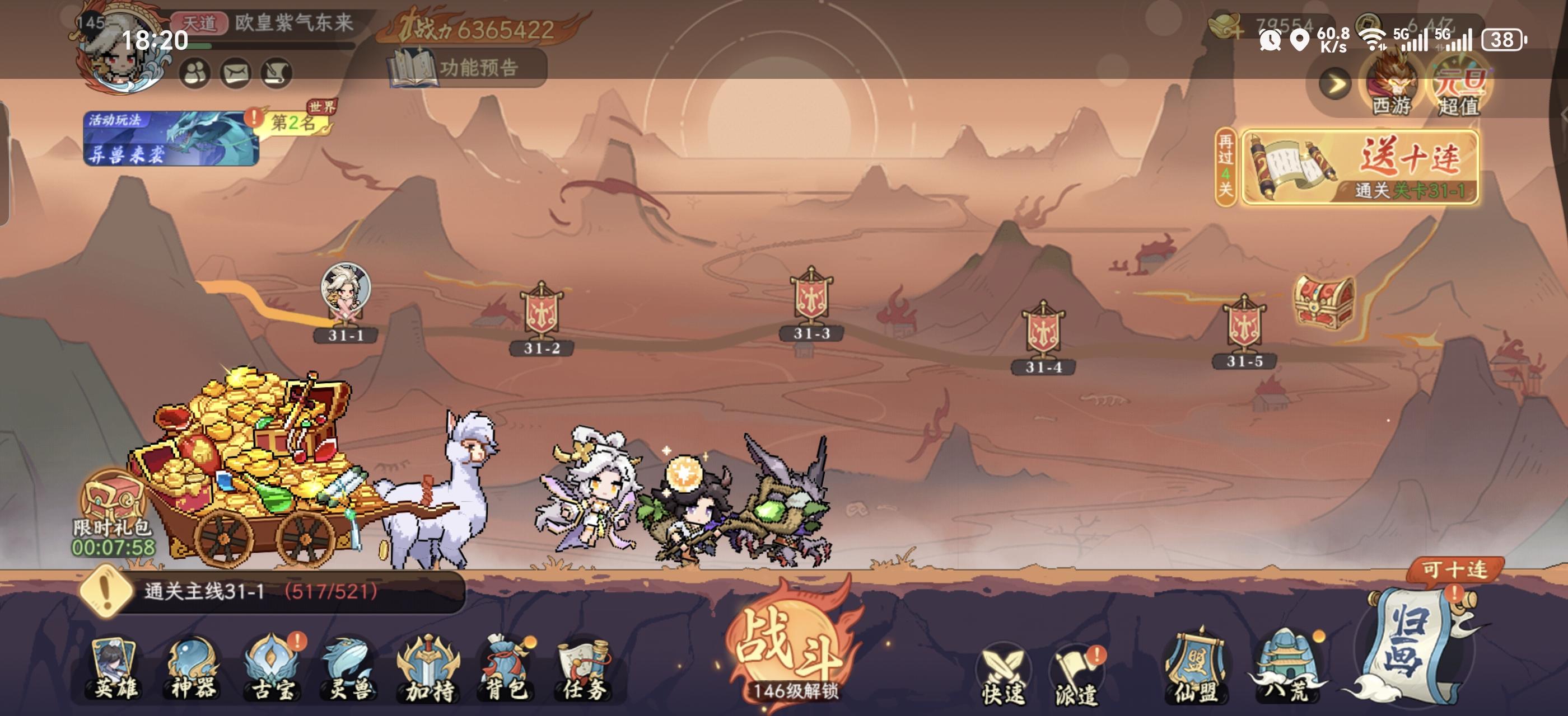 新的一年突破至800w,稳定全服战力前二十,毕竟已经不大氪每天6元很久了,期望山海幻境多做些新活动,每天收菜有点无聊 #山海幻境
