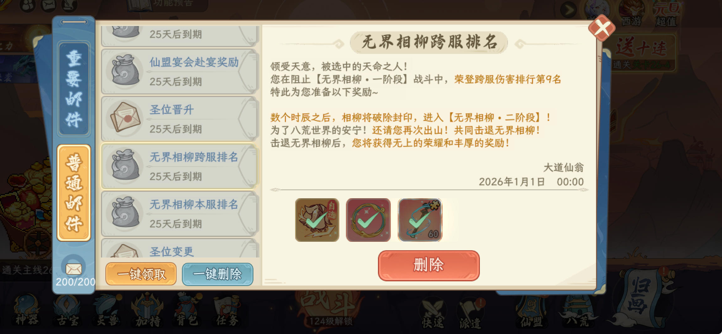 服务器维护时间:2026年1月7日 14:00~16:00 (预计2小时)更新方式:停服更新维护补偿:每停服维护1小时,补偿搜神画卷*5(若延迟开服,每延迟1小时 搜神画卷*5) 补偿将以游戏内邮件的形式发送,邮件有效期为7日;还请各位天道之主合理安排上线时间,以免造成损失。 【新增内容】一、新增开服遗迹矿藏活动【活动时间】开服第10天的早上5点开放,持续5天,开服第15天