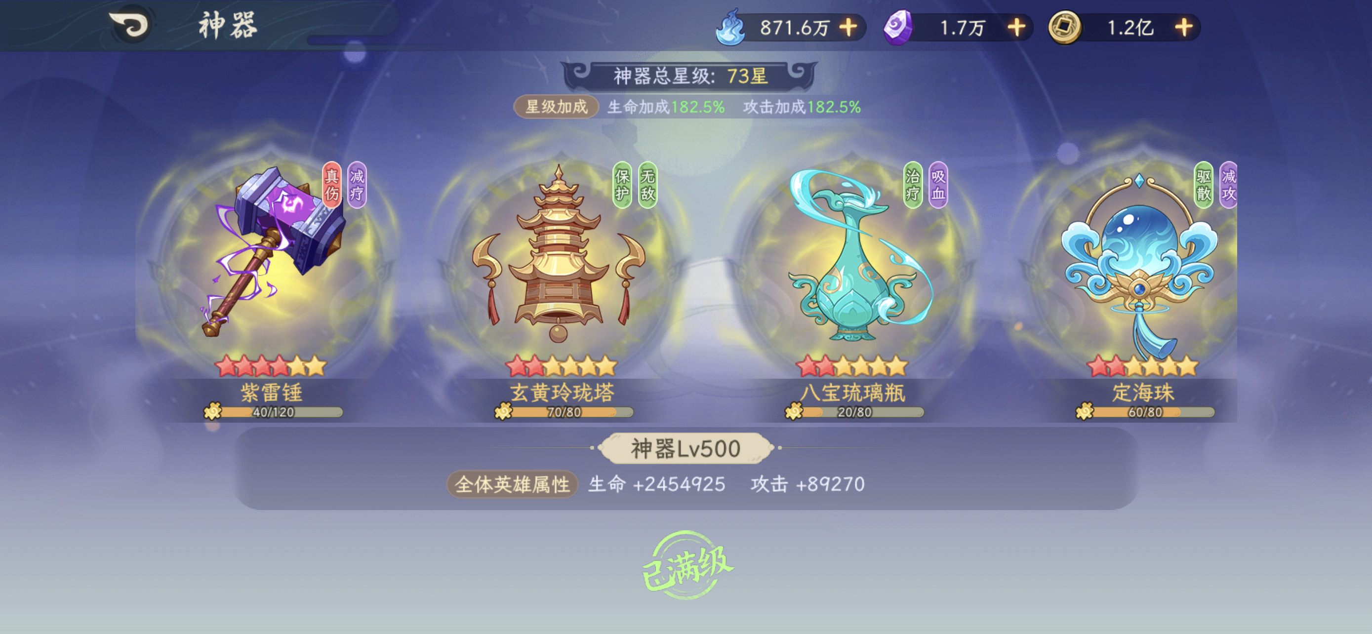 建议神器500级以上升级需要神器碎片,不然多的碎片没地方用