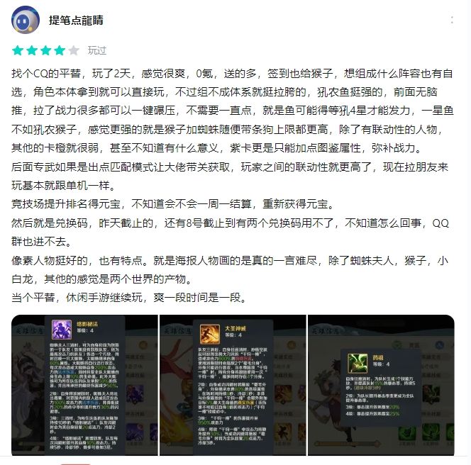 搞个全区域聊天系统可以相互交流切磋,搞个对战晋级赛活动这样有助于研究阵容,大佬这样竞技登顶才有感觉,而不是什么东西都要差一点让别人逼氪,出什么充值活动大佬才有动力,数值确实需要调整一下不用变动太大了一样的阵容属性